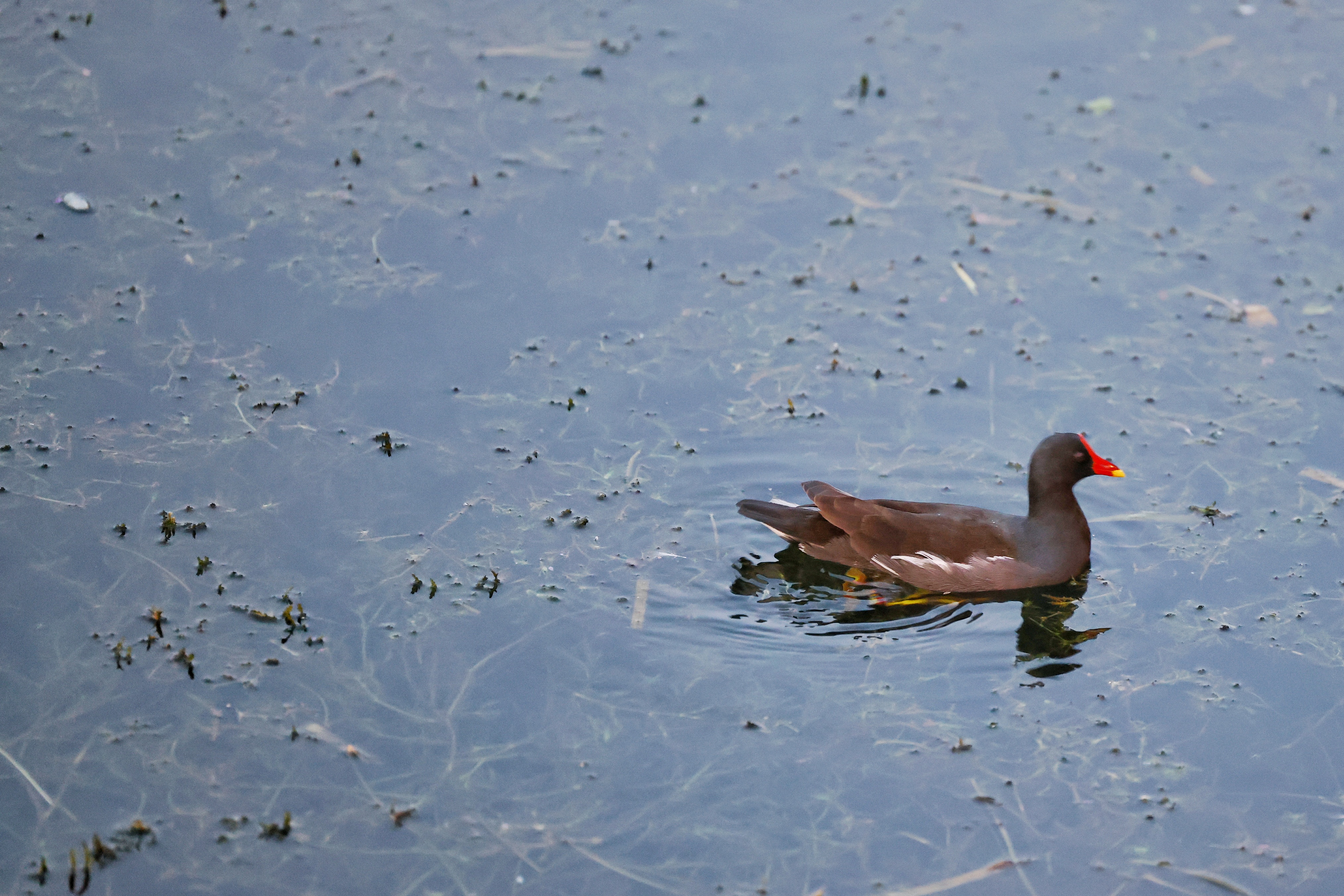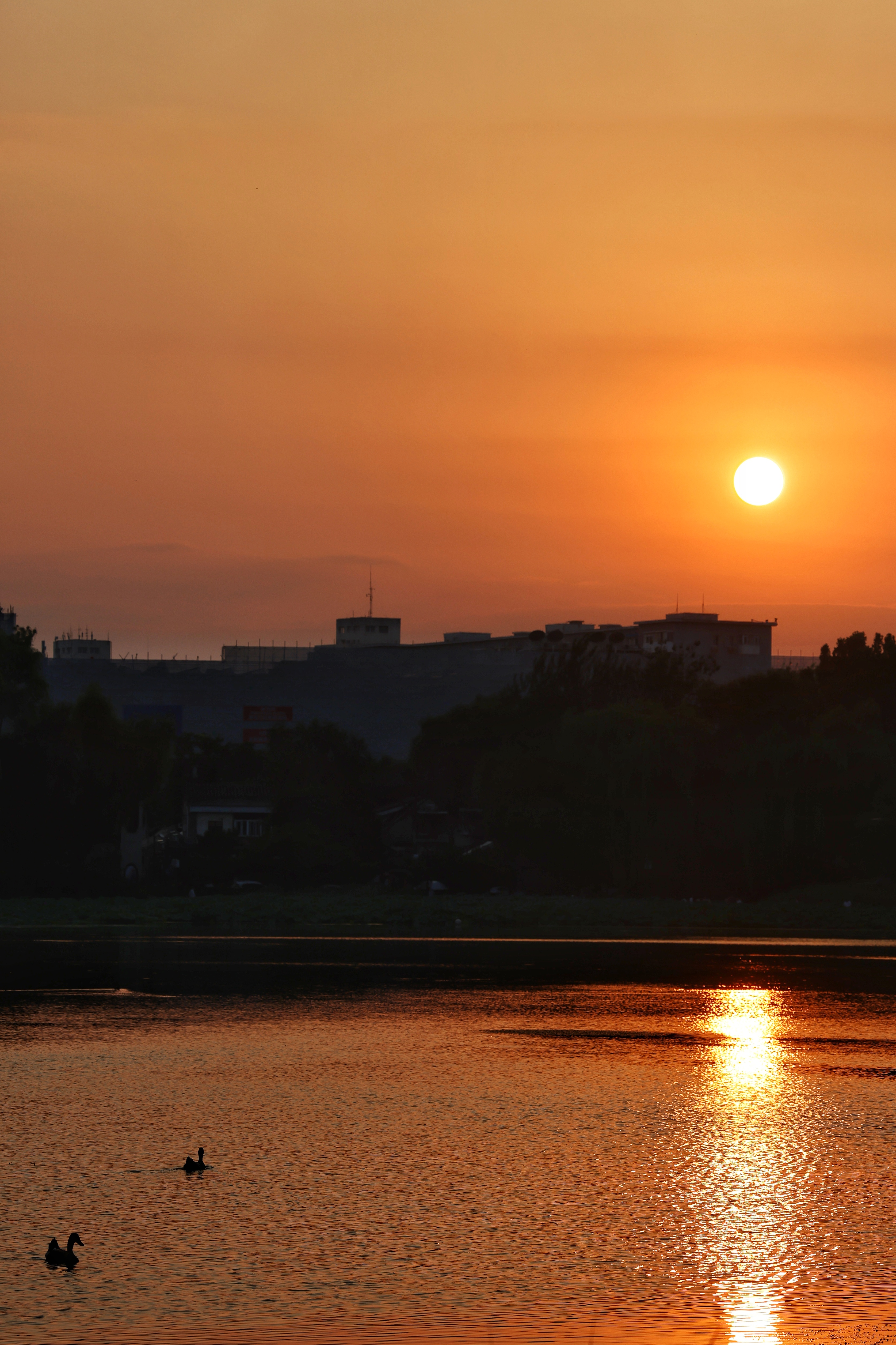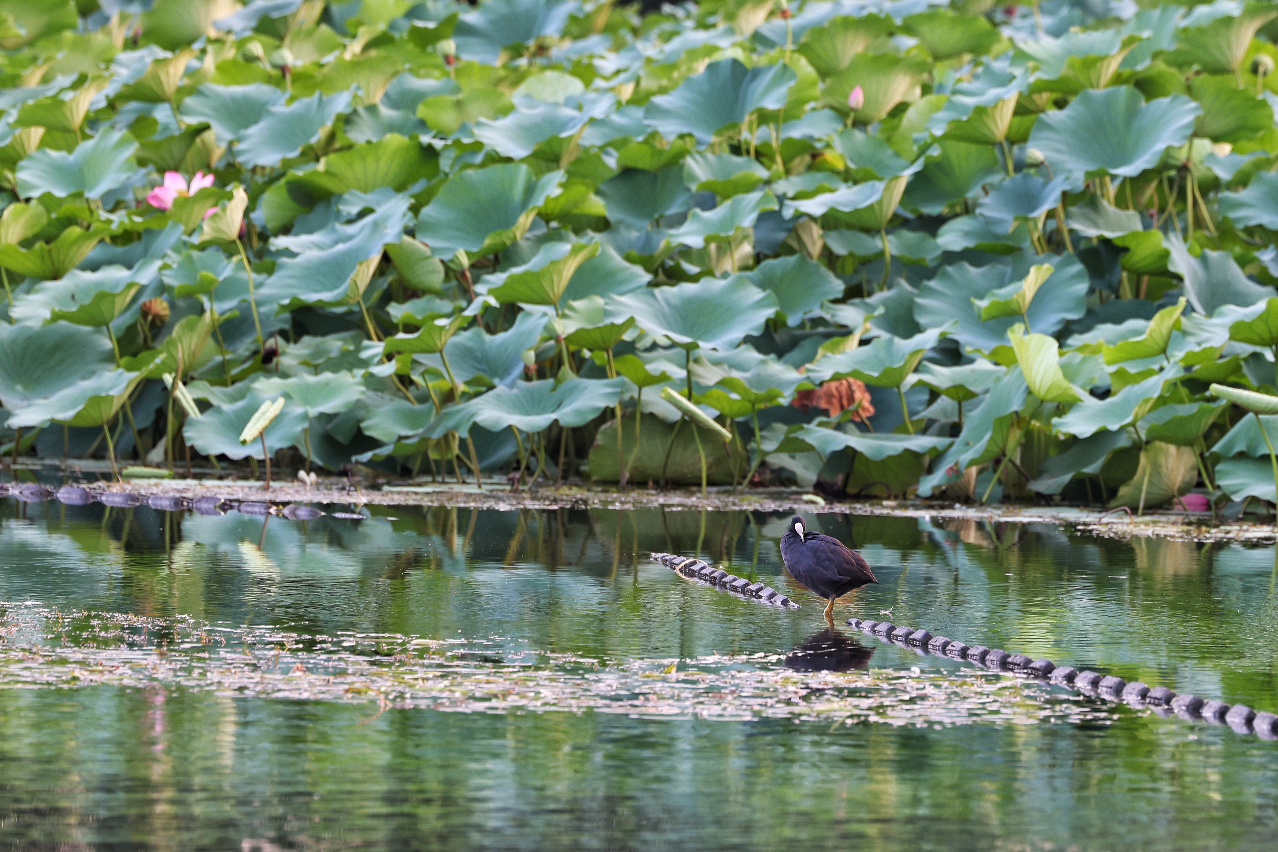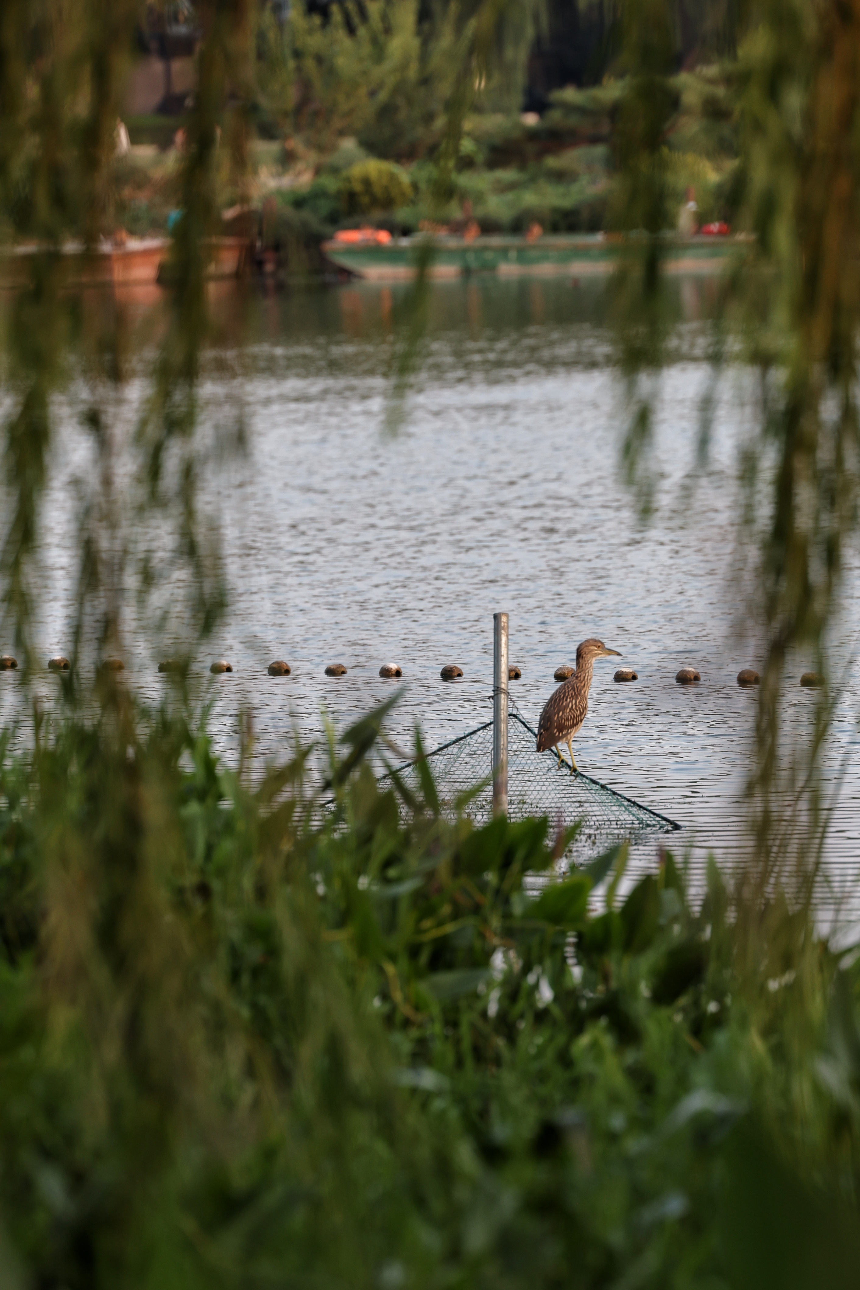 而水中的水鸟,丝毫不受人群的打扰,时而低头觅食,时而振翅低飞,在水面上划出一道道优美的弧线,为这悠闲的氛围更添了几分灵动与生机。