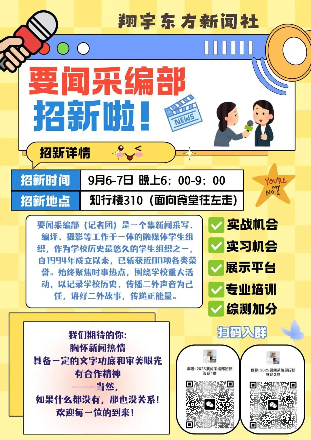 在这里,你不仅能积累校园采访经验,还有机会获得新华社、人民网、中国青年报、北京青年报、北京日报等媒体的实习推荐,与专业新闻人并肩工作,体验新闻一线的节奏与激情。