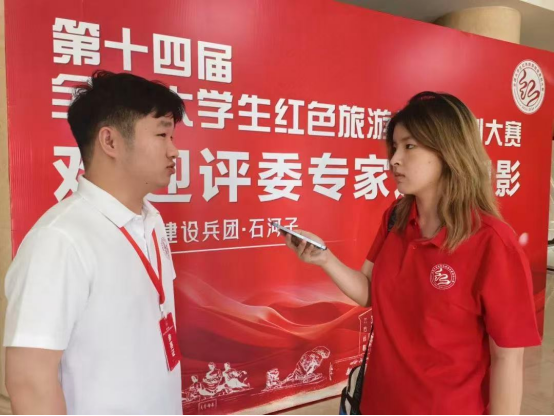 朱思迪在新疆石河子采访红旅大赛参赛选手