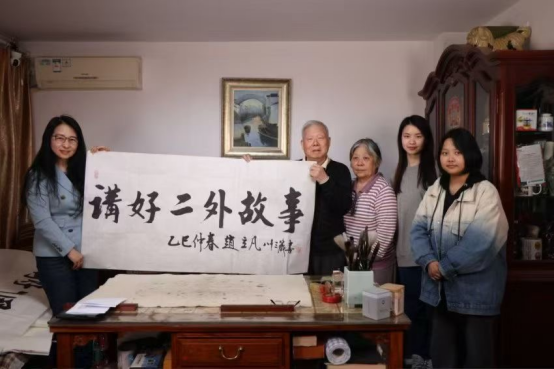 记者团师生采访二外校友、原中央电视台副总编辑赵立凡