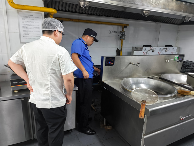 油烟管道是餐饮厨房的“呼吸系统”,但内部长期积聚的油垢遇明火或高温极易燃烧,也是潜伏的“隐形炸弹”。此次行动中,执法人员秉持“不放过一处隐患、不遗漏一个细节”的原则,深入餐饮企业后厨及油烟管道关键区域,展开全方位、立体化检查。在现场,执法人员重点查看排油烟道运行是否顺畅、管道接口是否存在渗漏、防火阀等安全装置是否完好有效,仔细排查因油污堆积可能引发的火灾风险。