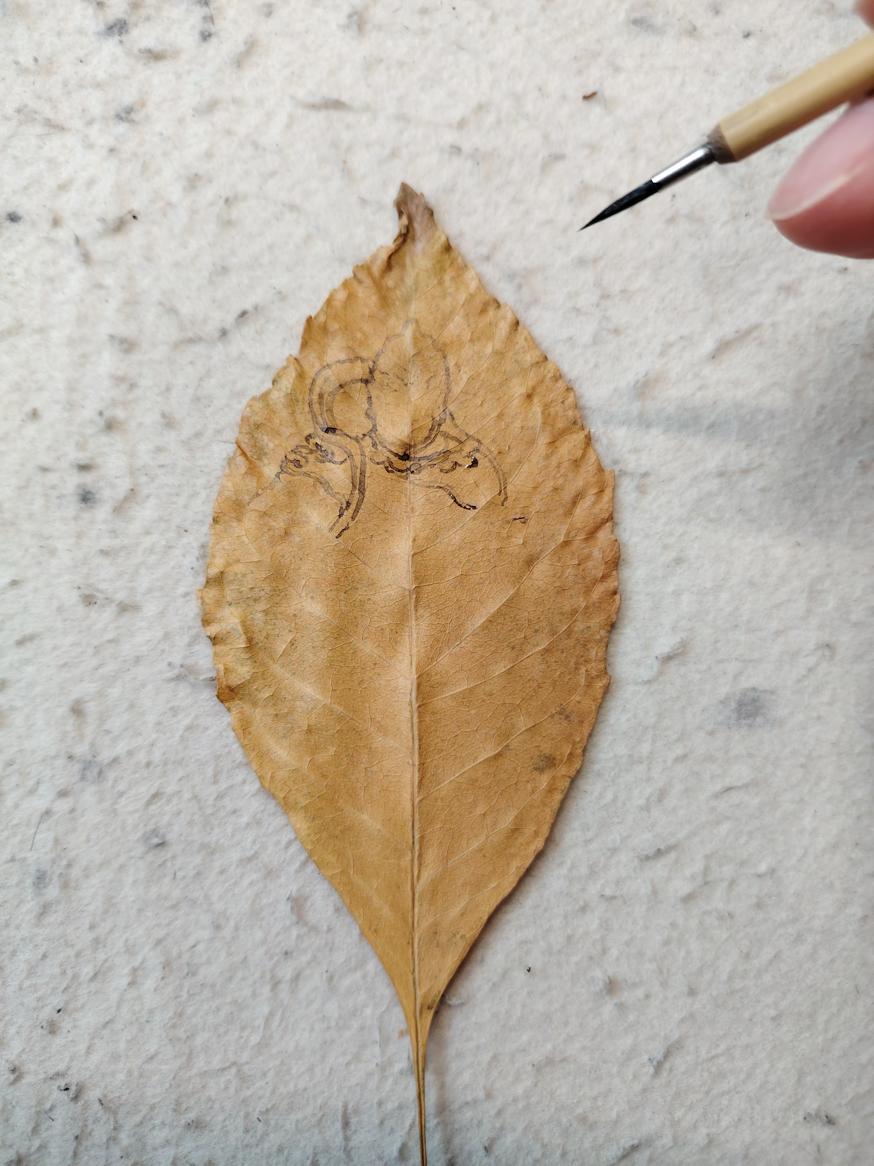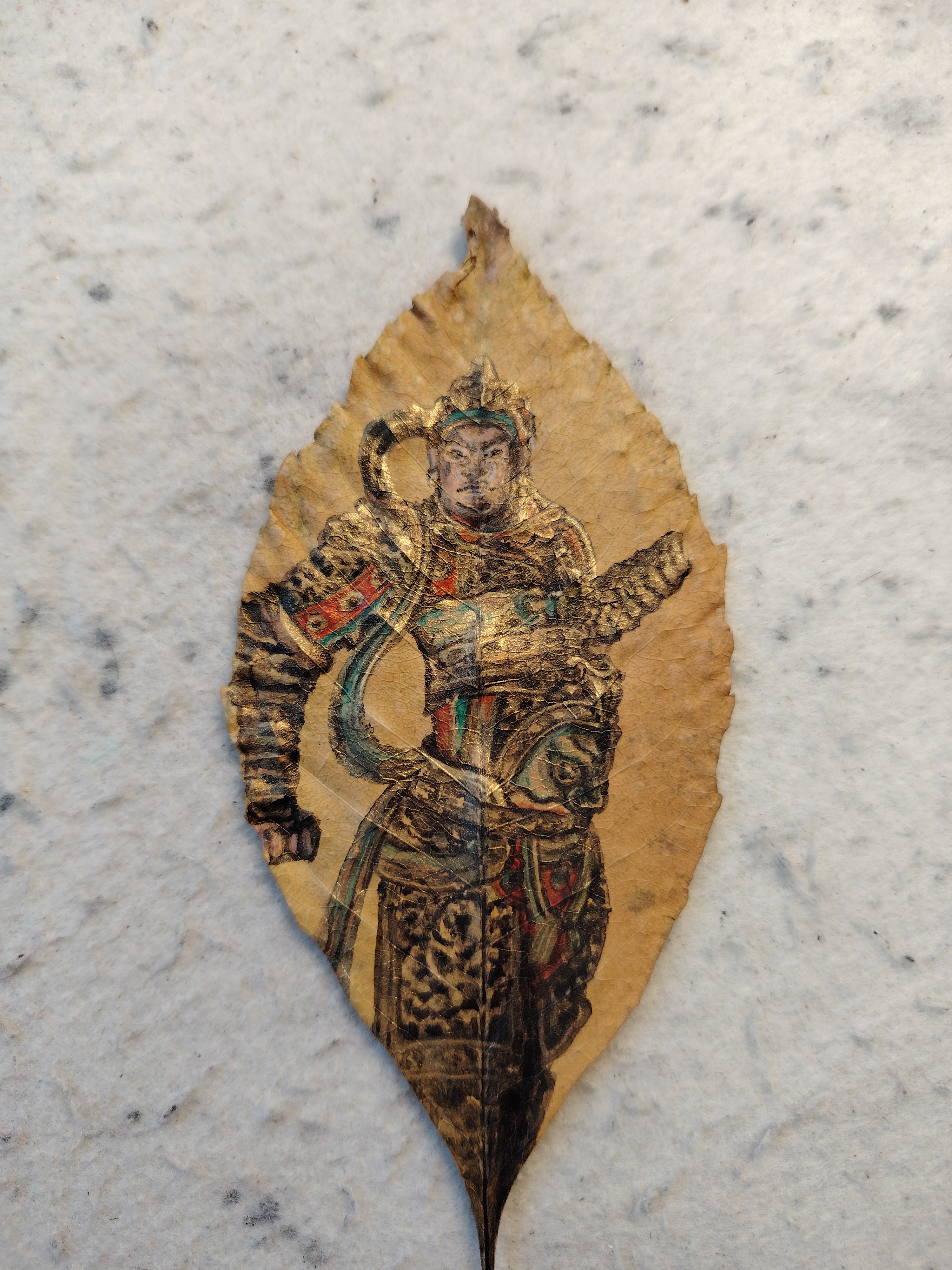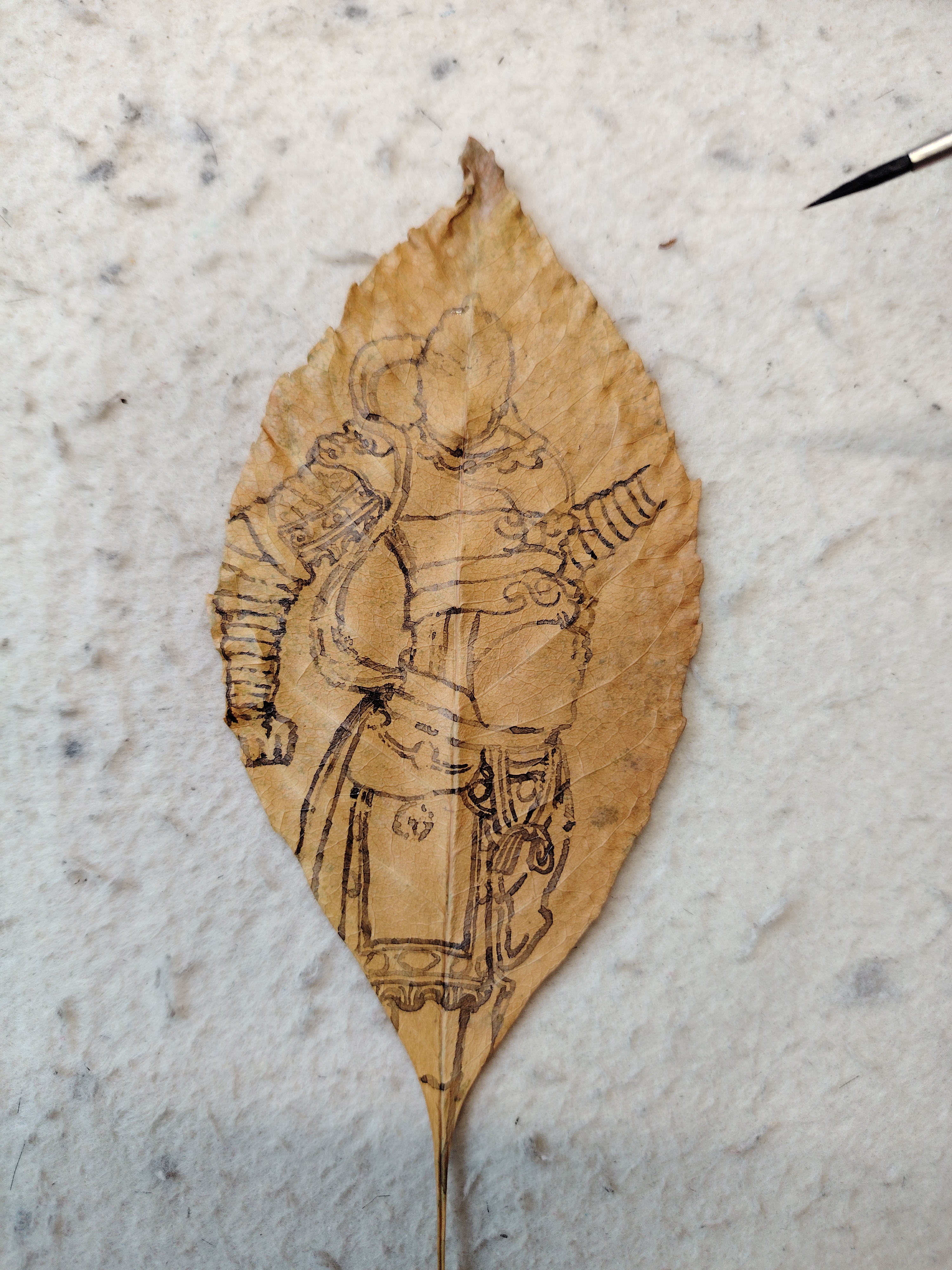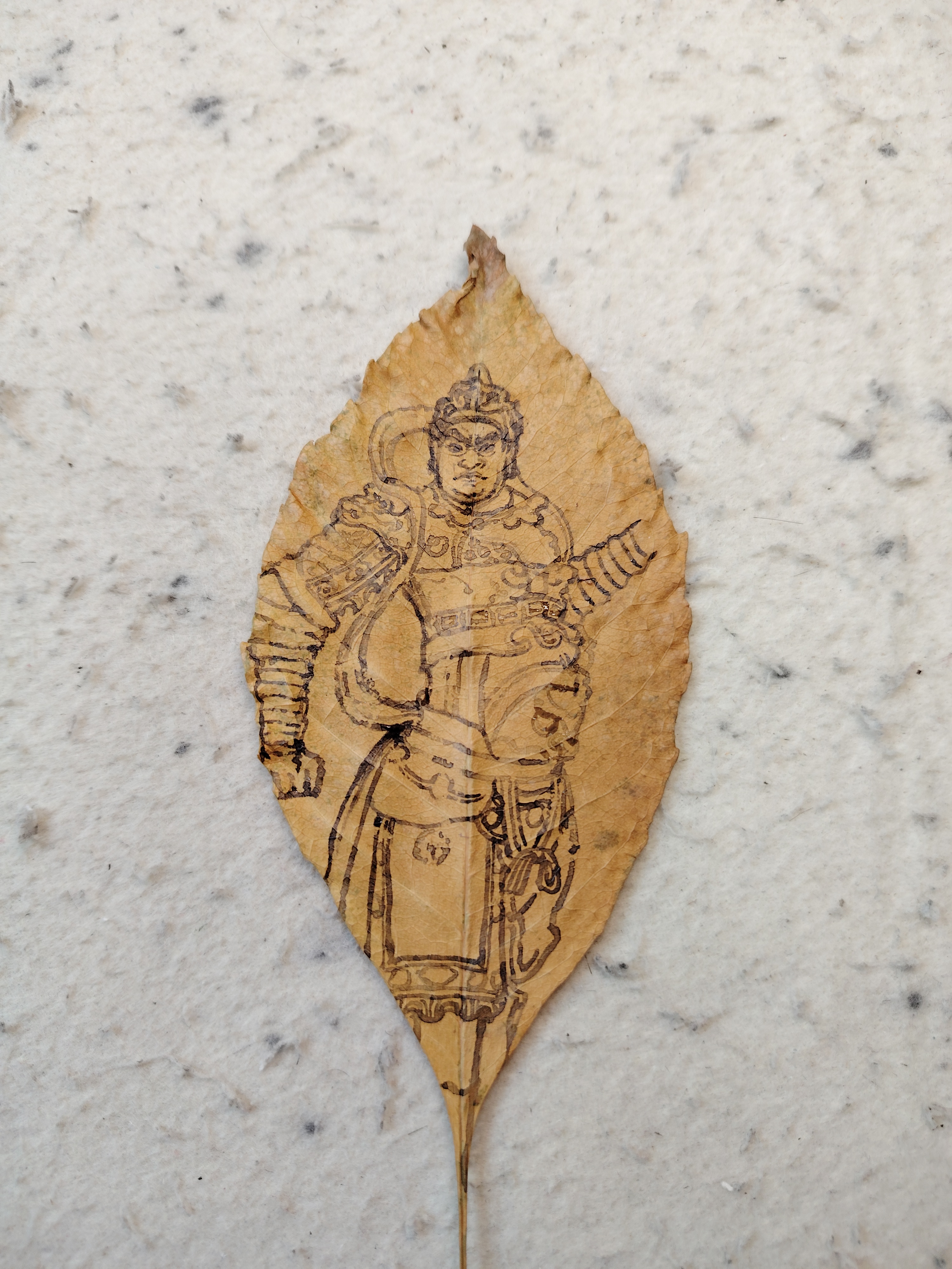 回京后开始创作,以双林寺有着“天下第一韦陀”美誉的雕塑为灵感,在叶上创作,呈现当代审美与传统雅致相融合的新风貌!