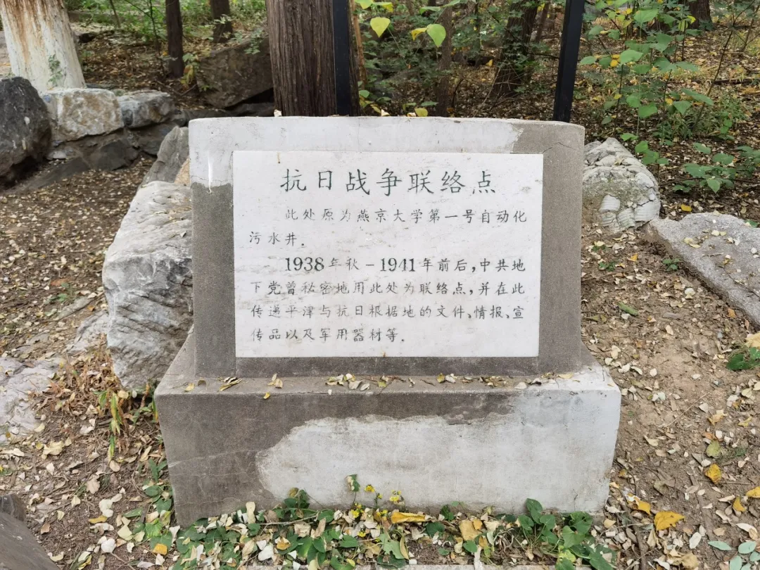 ▲位于北京大学校内的抗日战争联络点纪念碑
