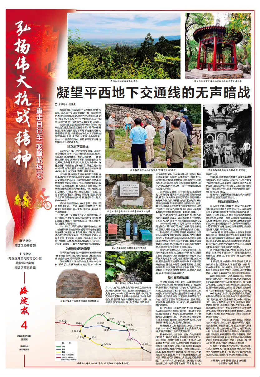 今年是中国人民抗日战争暨世界反法西斯战争胜利80周年。海淀融媒特别推出《弘扬伟大抗战精神——重走自行车“驼峰航线”》系列报道,铭记历史,把伟大抗战精神一代代传下去。