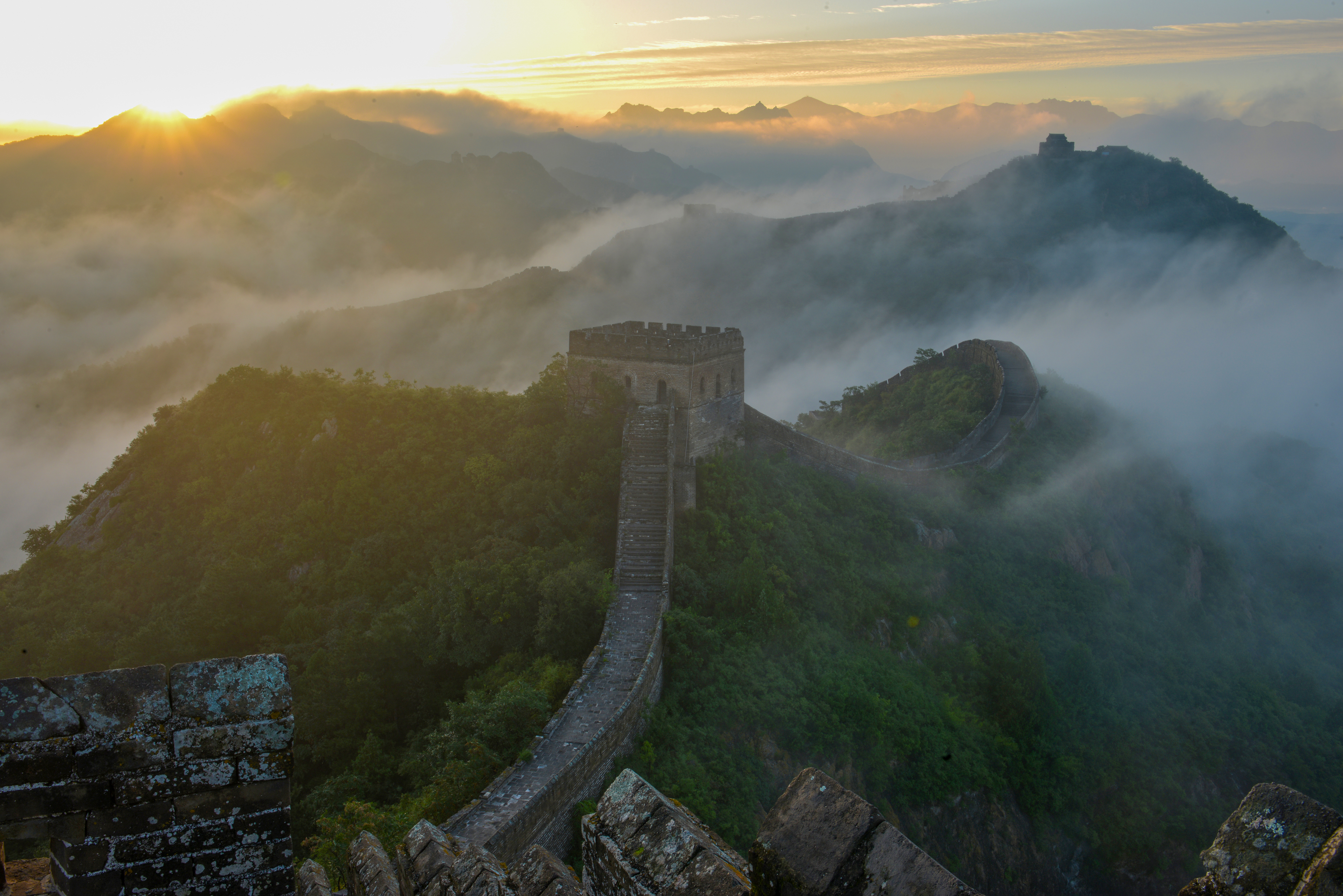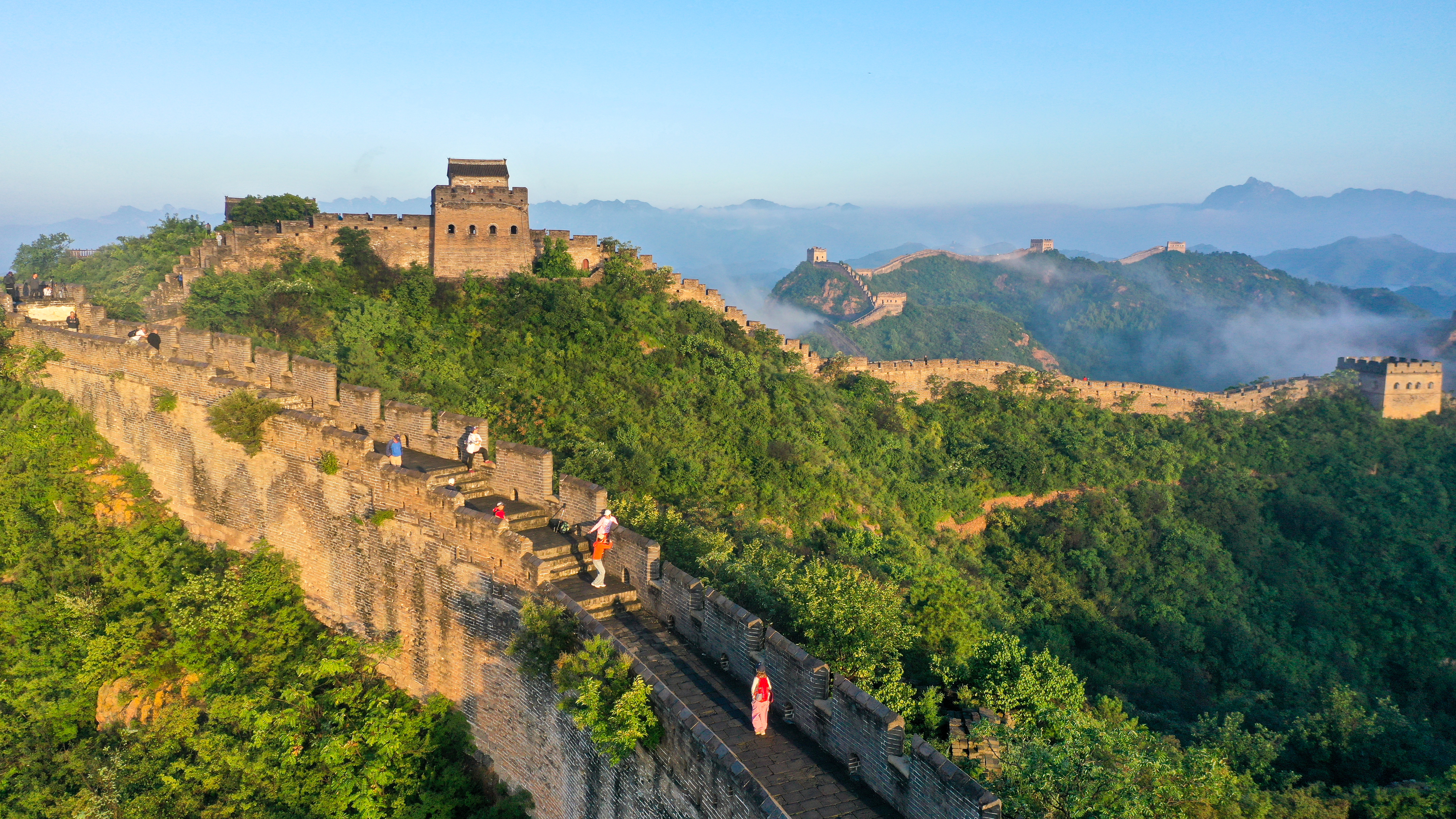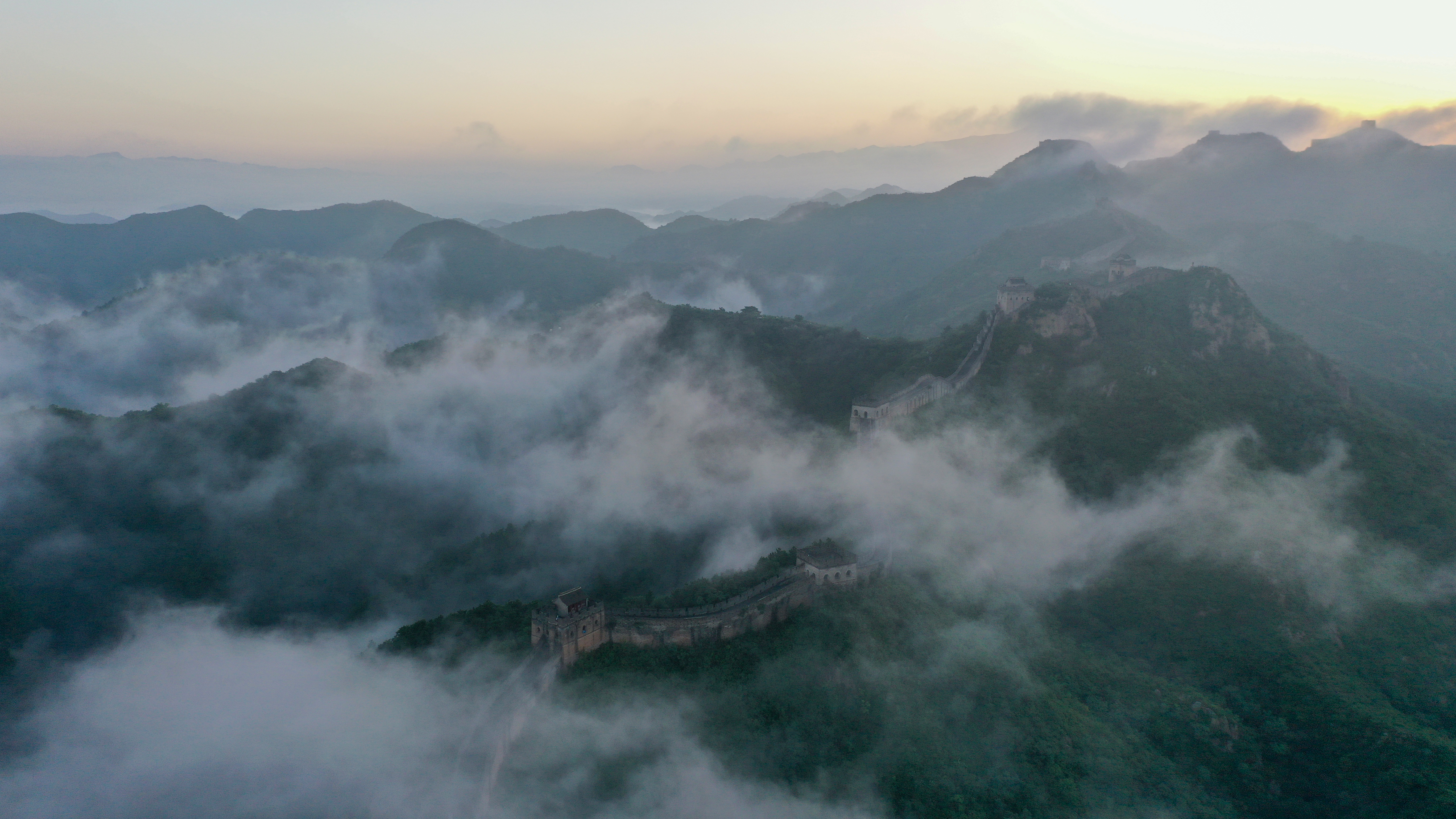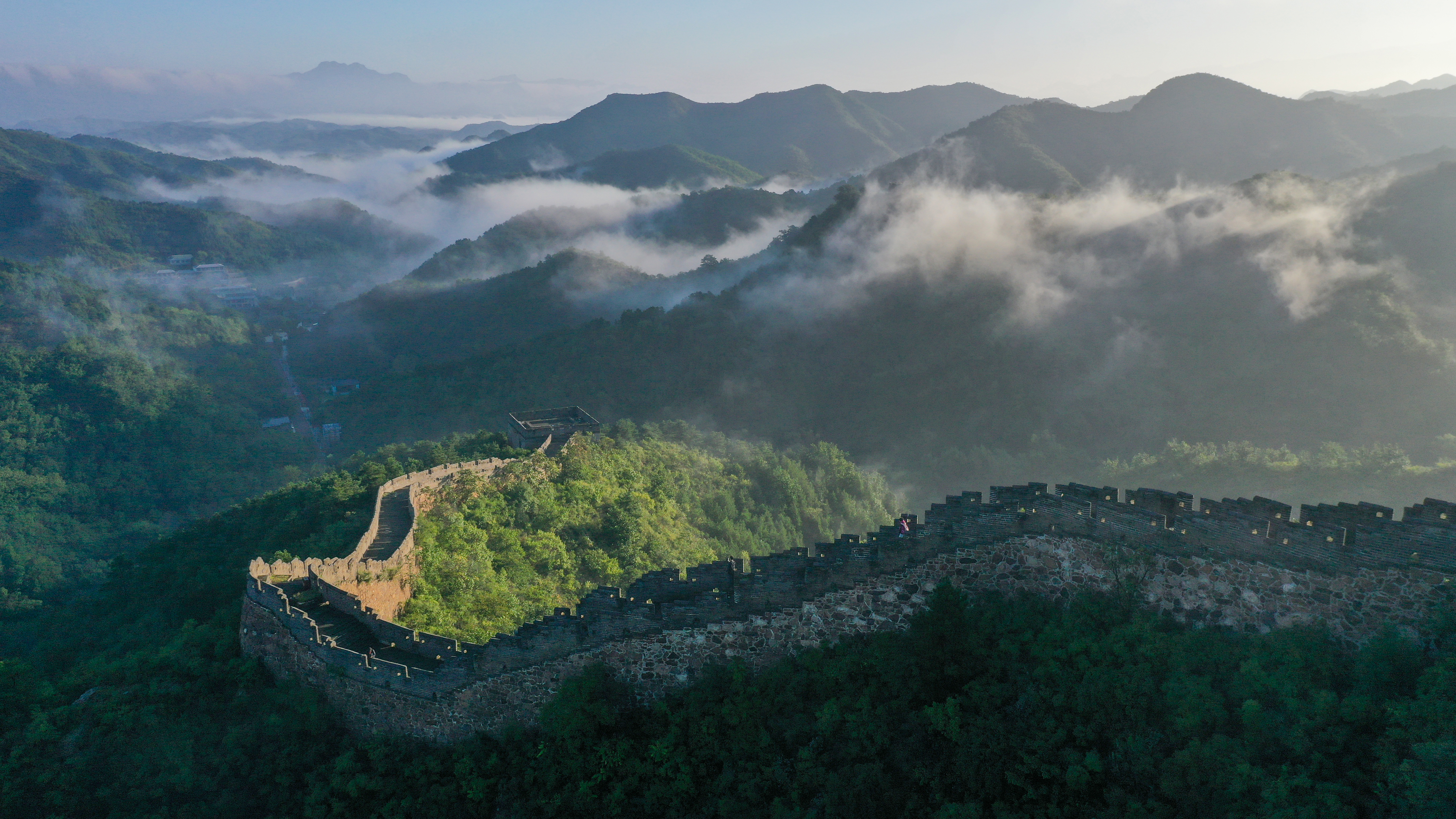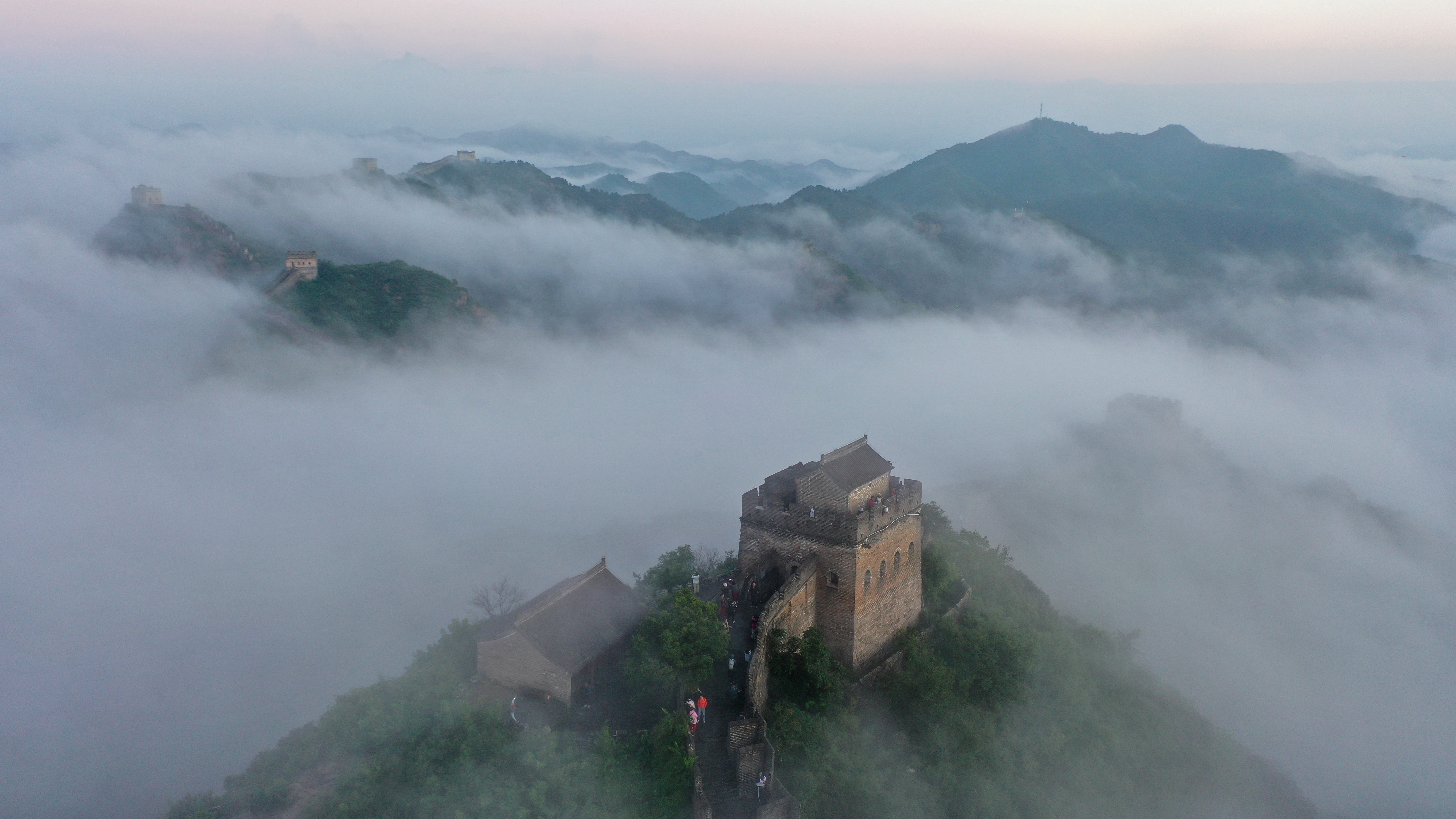 一场秋雨过后,清晨时分的河北省承德市滦平县金山岭长城云海涌动,烟波浩渺,云海中的古长城、山峦,若隐若现,宛若仙境,壮美若画(图片摄于2025年9月6日无人机照片)。