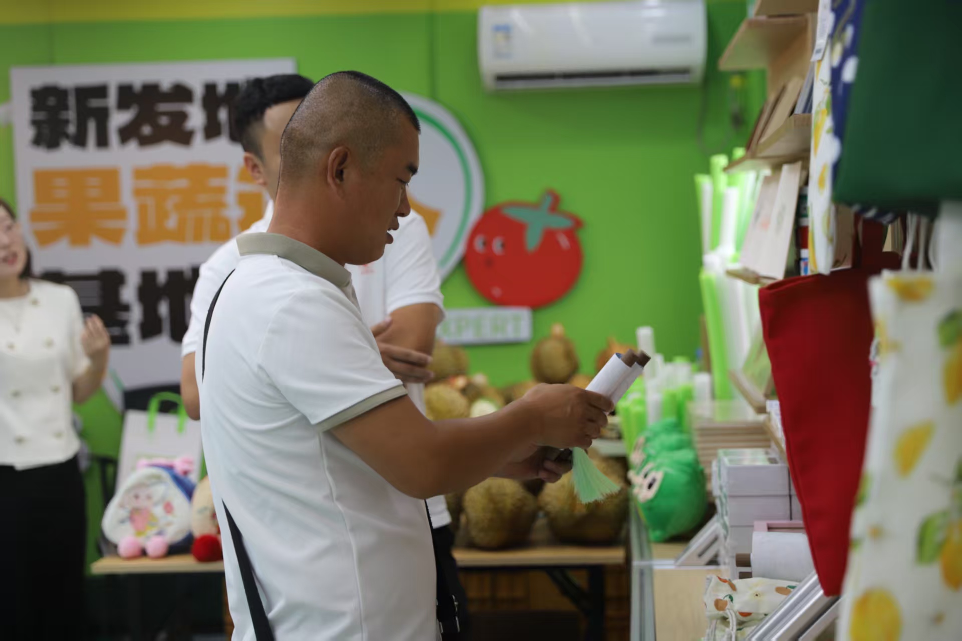 造型独特的店面、创意纷呈的果蔬周边……9月5日,全国首家以农产品批发市场为主题的文创商店——“新发地果菜园”在新发地市场湖北厅入口处正式亮相,吸引不少顾客驻足体验。作为常态化、可持续的新发地文化展示与消费空间,该店以蔬果元素和市场文化为创意核心,开发农产品衍生品,释放新发地品牌价值,打造集文化体验与创意消费于一体的沉浸式“农商文旅”融合新场景。