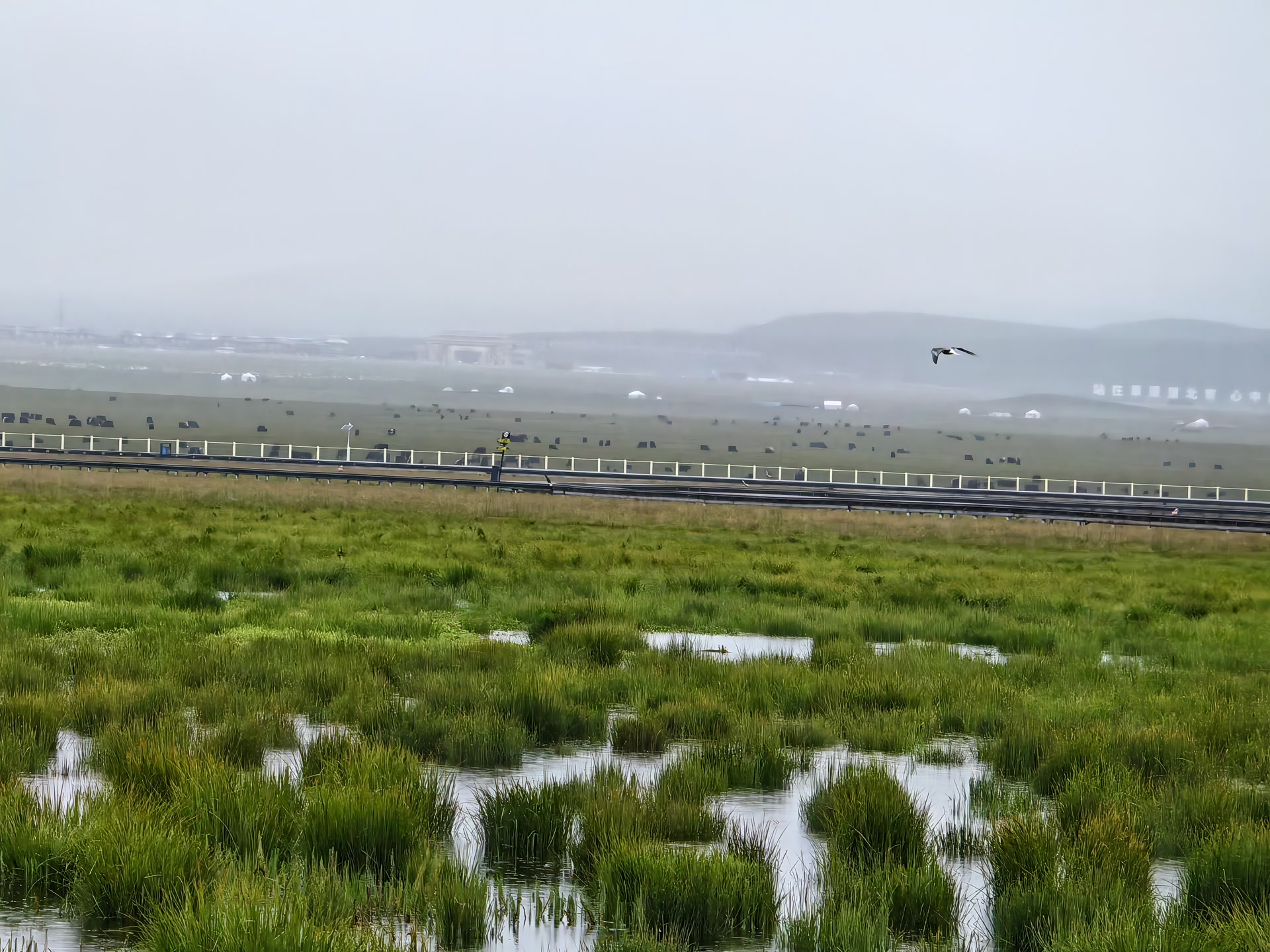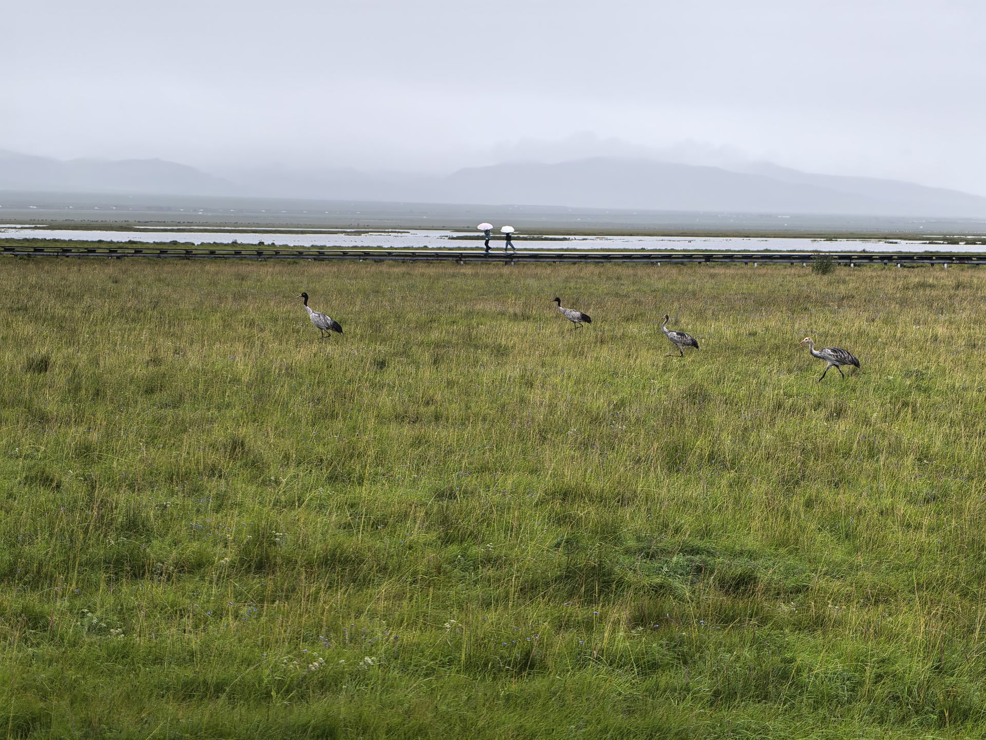 2025年8月末的甘南,迎来了罕见的雨夹雪天气。上午时分,雪花还在纷纷扬扬地飘洒,但当我们下午到达花湖时,雪已经停了,只剩下细密的雨丝依然在飘洒。最高气温只有3℃,这让我们不得不穿上了带来的最厚的衣服。车窗外的若尔盖草原在这难得一见的八月雨雪洗礼后,显得苍茫而神秘,远山上还能看到刚刚落下的雪痕,而近处的草原则在细雨中泛着湿润的绿光。