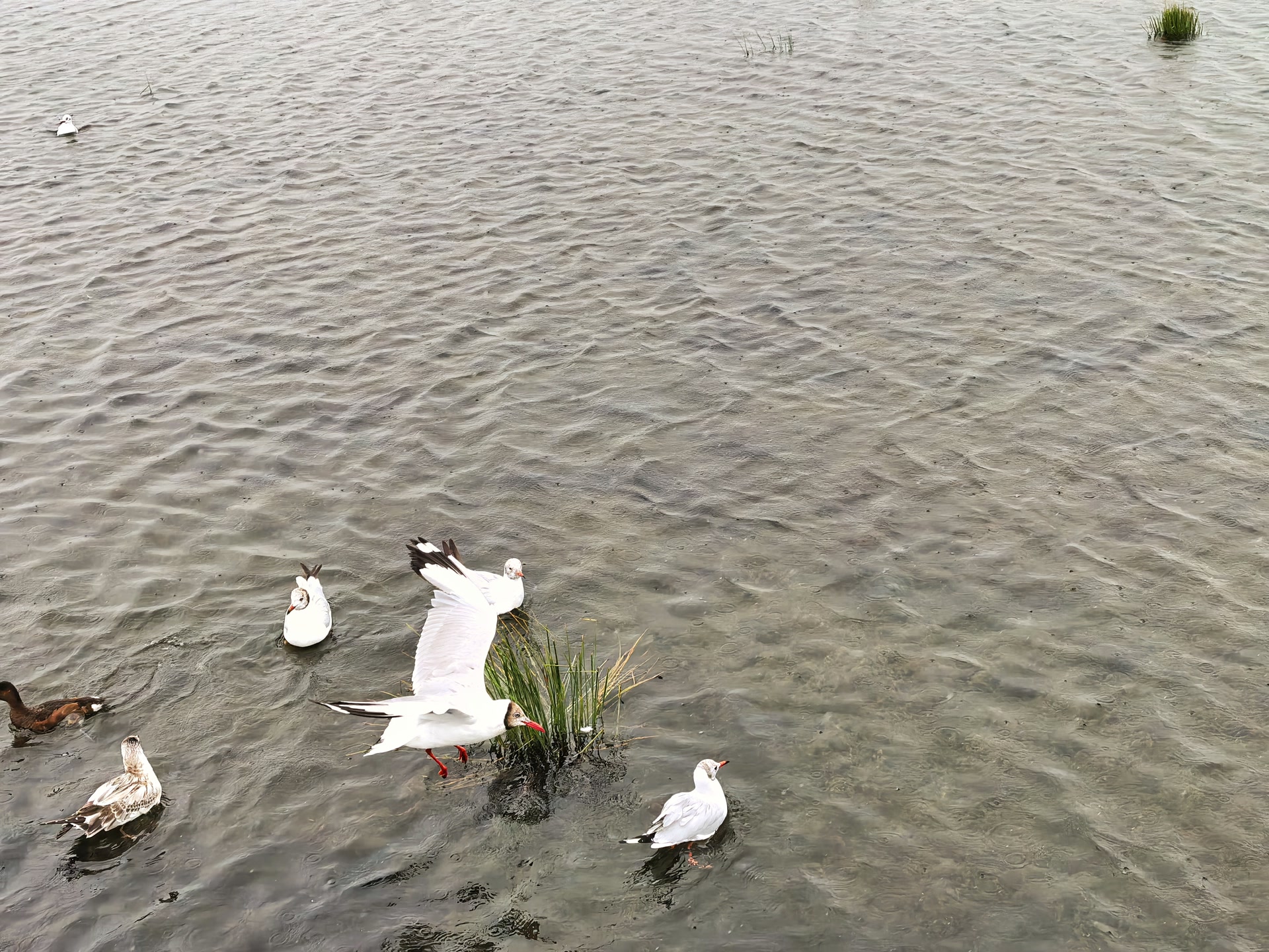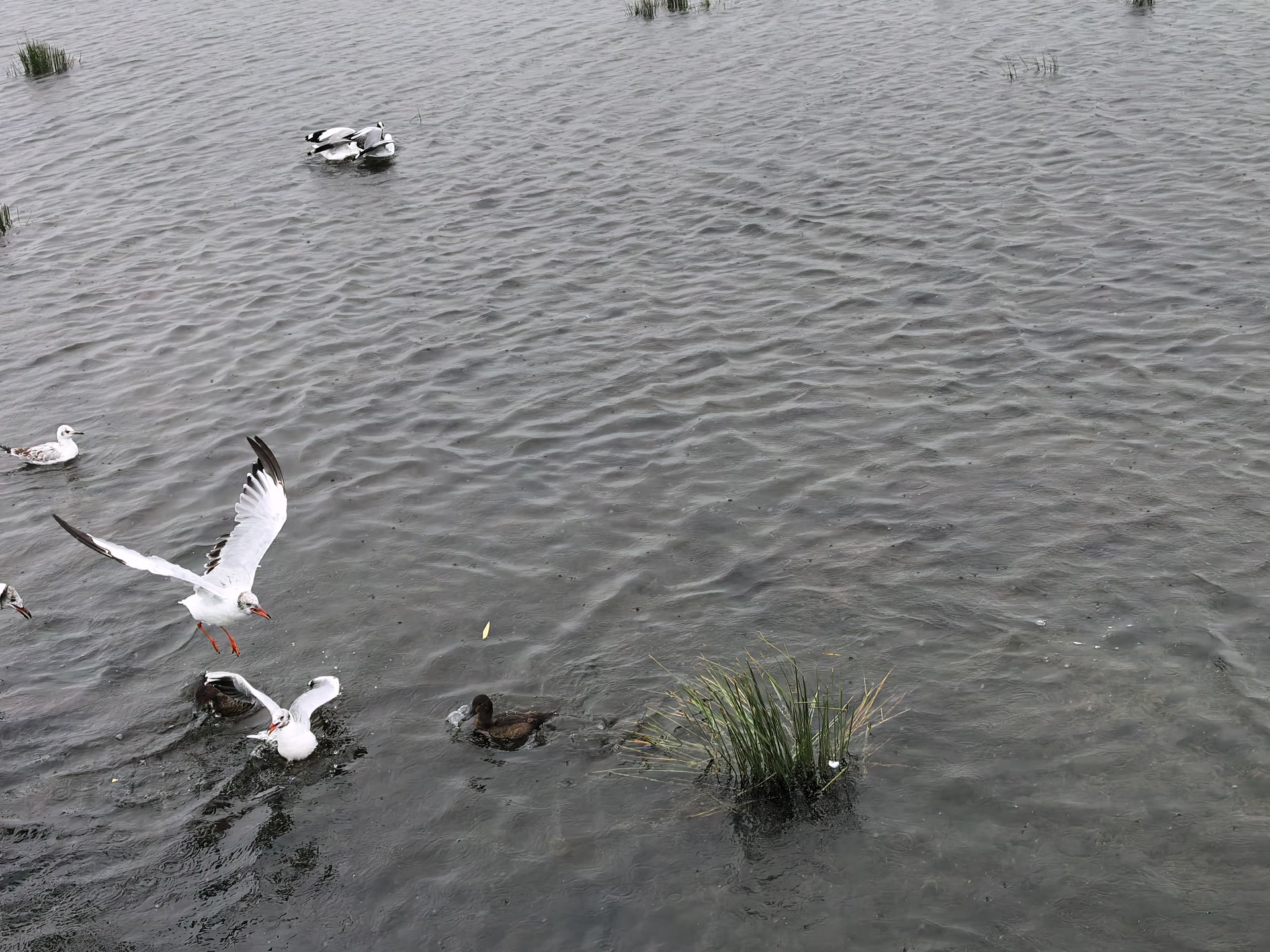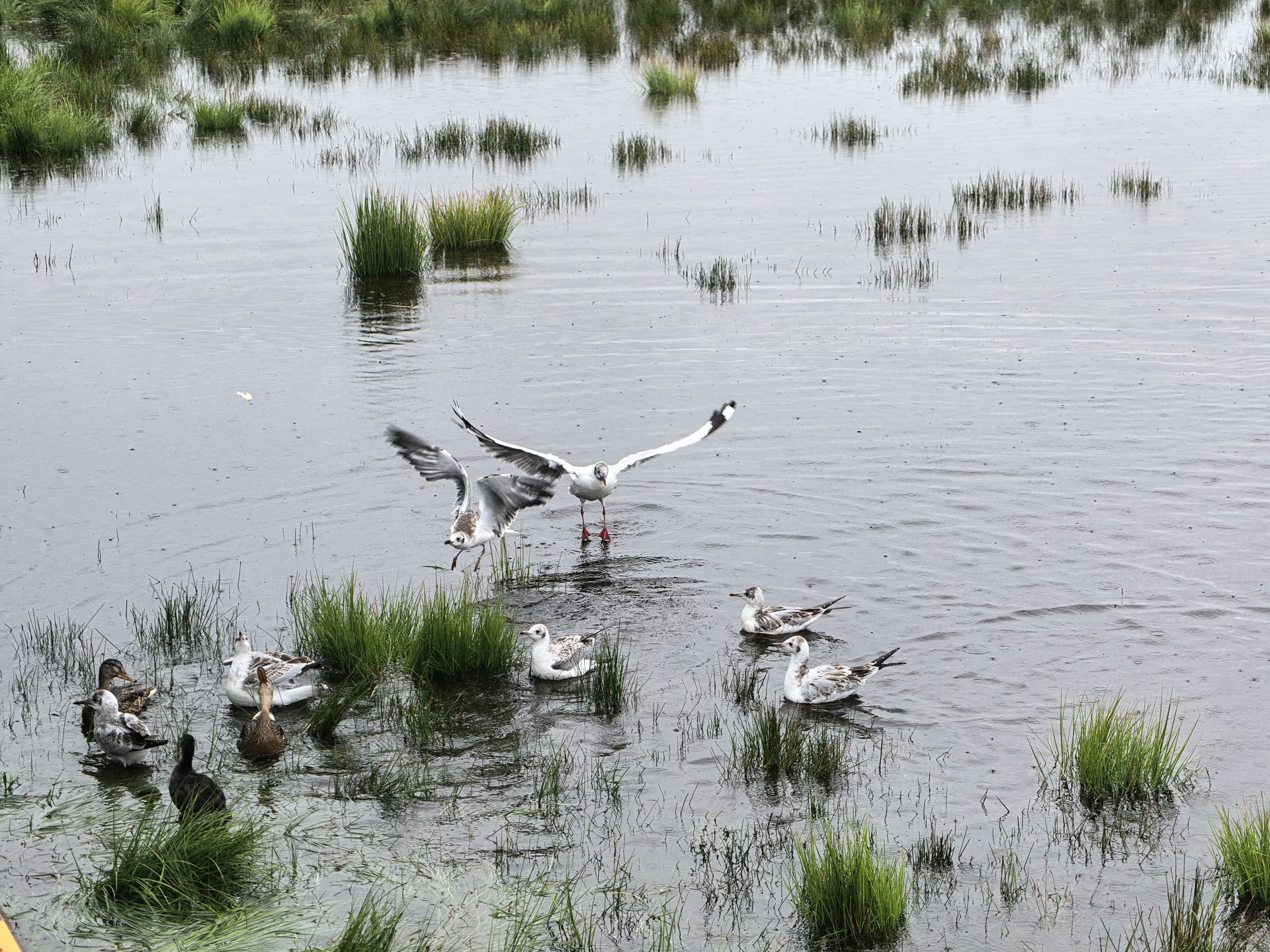 一群水鸟从雨雾中悠然游来,它们的羽毛在细雨的洗礼下显得更加厚实光亮。这些高原的精灵似乎对这八月末的寒雨习以为常,在略显冰冷的湖水中自由穿行,时不时发出几声清脆的叫声,那声音在绵绵细雨中显得格外悠远动听,像是为这雨境花湖谱写的天然乐曲。它们时而潜水觅食,时而浮出水面抖动羽毛,甩掉身上的雨珠,一副怡然自得的模样。
