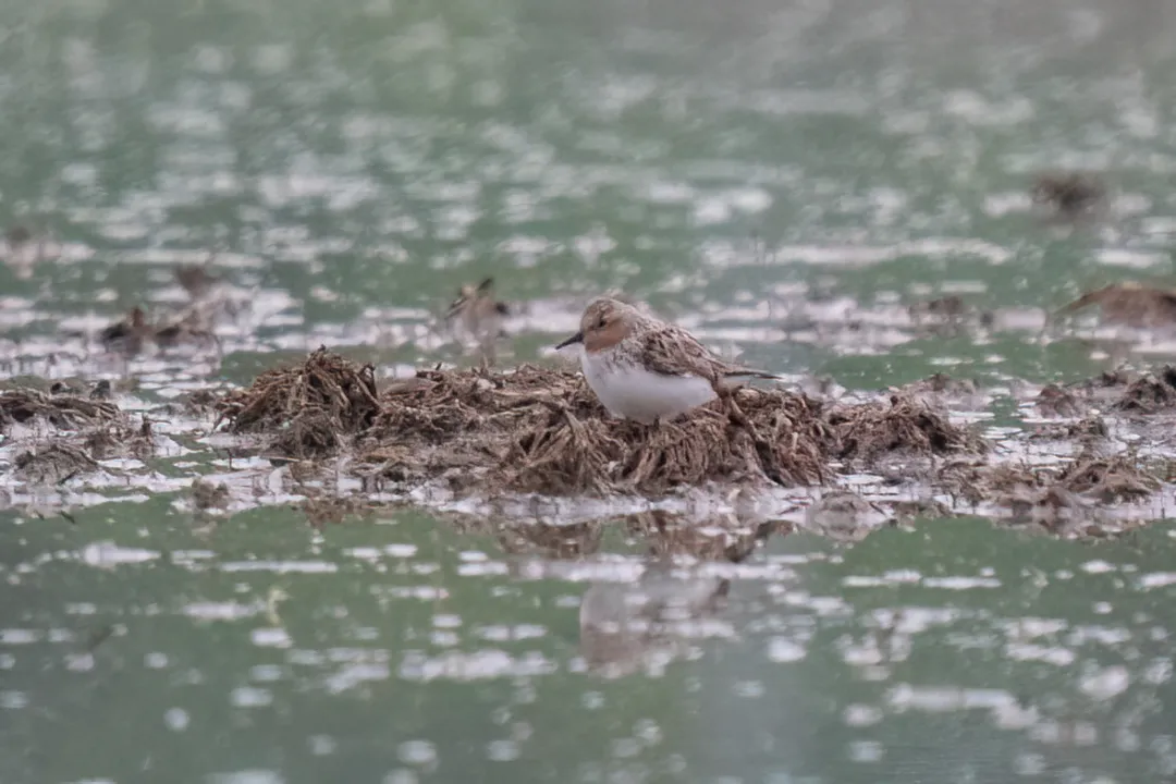 时间回到5月22日清晨,细雨如纱般笼罩着京西稻田。53岁的彭涛早已架好长焦镜头,静静地守候在田埂边。灌水备耕的稻田化作明镜般的浅滩,几只灰褐色的小鸟轻盈掠过水面。透过600mm的镜头,彭涛清晰地捕捉到它们颈间那一抹淡红色的羽毛——这是被列入国家三有保护动物名录的红颈滨鹬,一个海淀区鸟类观测史上的新纪录就此诞生。
