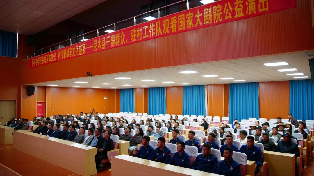 观众在尼木县党校礼堂观看演出