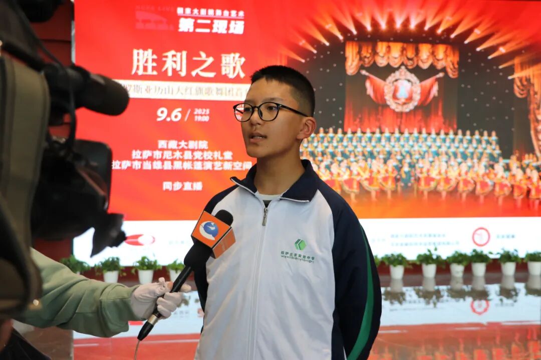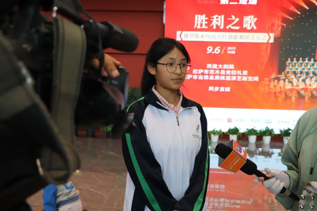 在西藏大剧院,北京西藏拉萨指挥部邀请了北京拉萨实验中学的400名学生前来观演。演出现场,学生们被这支“戎装艺术劲旅”的激情演出深深吸引。初三学生达瓦欧珠说,“先辈们流血牺牲换来幸福生活,我们要好好珍惜。”高三学生次仁玉珍告诉记者,观看直播演出时好像切换了时空,她感觉自己此时此刻正沉浸式坐在北京国家大剧院的演出现场观看这场演出。舞台艺术和导播技术的完美融合,让同学们深切体会到科技进步带来的美好生活。