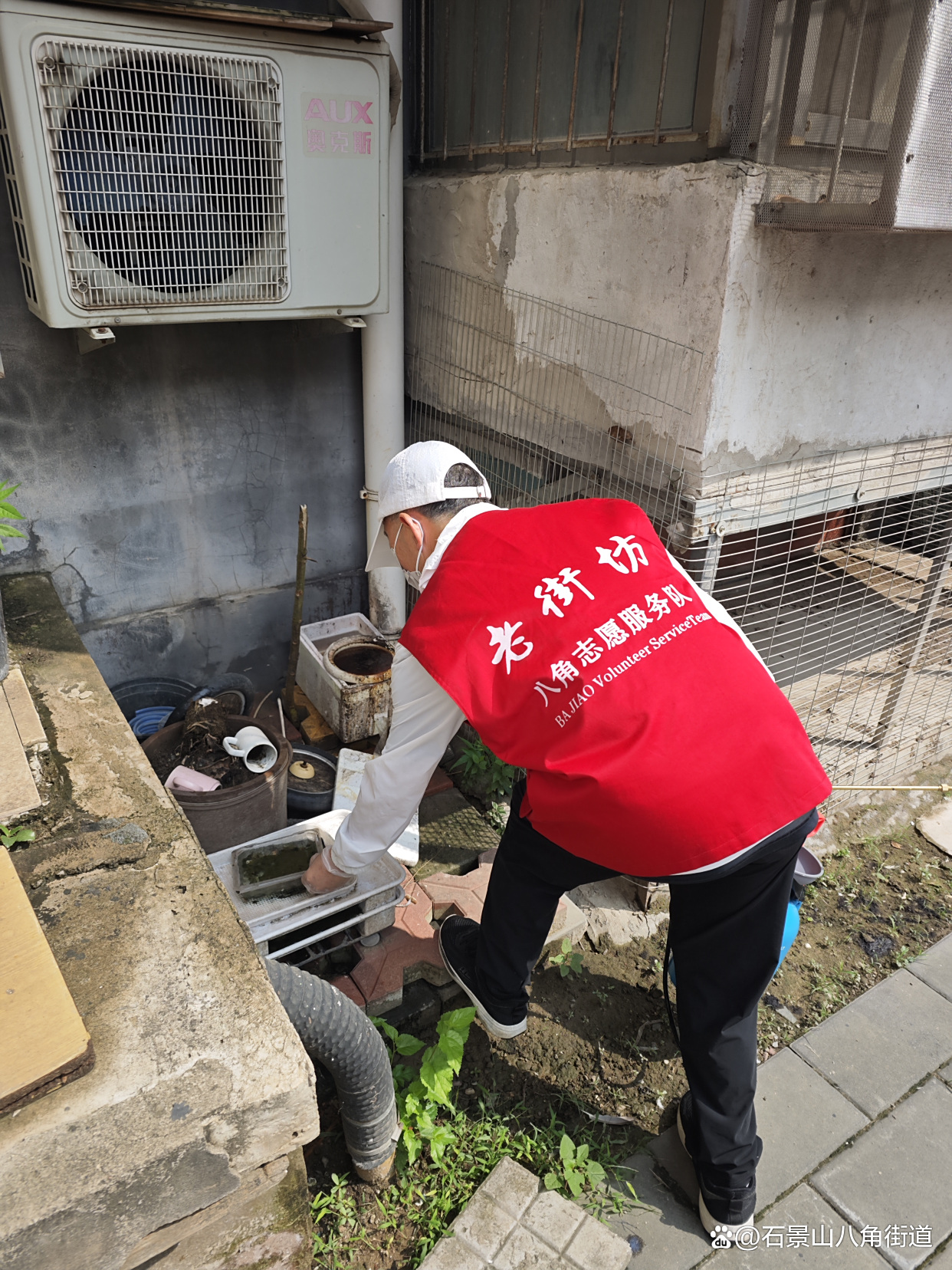 街道调动社区、物业以及老街坊,结合社区党员“双报到”、老街坊“周末清扫日”等活动,按照“一清”、“二翻”、“三疏”、“四封”、“五杀”的灭蚊“五步灭蚊法”,采取小循环、高频次的方式集中开展翻盆倒罐、清理杂草和堆物堆料等环境整治,清除阳性水体从源头减少蚊蝇孳生。