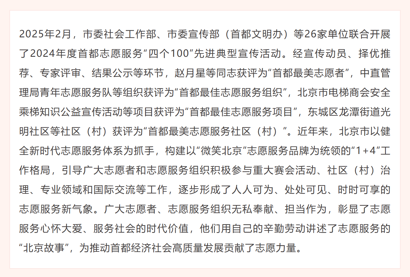 2024年度首都志愿服务“四个100”先进典型名单发布