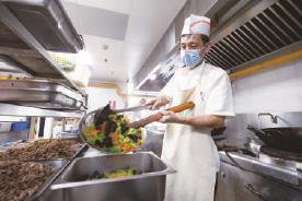 上午10点,早饭时间刚过,电子屏切换到午餐菜谱:梅菜扣肉、滑蛋虾仁、小炒黄牛肉、宫保鸡丁、老北京炸酱面、朝鲜冷面……记者数了数,当天午餐一共准备了20多种热菜,加上近10种主食,口味丰富、荤素搭配合理,能够满足老人午餐需求。