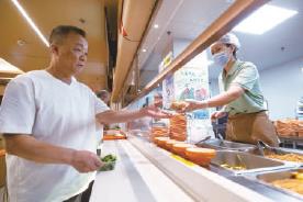 早晨6点半,几位早起锻炼的老人陆续走了进来。“一碗粥,一个鸡蛋,两个包子。”李阿姨熟练地端着餐盘选了吃食,刷了老年卡,找了个靠窗的位置坐下。“年纪大了,自己做早饭嫌麻烦,外边的又太油,这里的早点吃着舒坦。”对李阿姨和许多街坊邻居来说,来这里吃一顿热乎、省心的早餐,已经成为习惯。