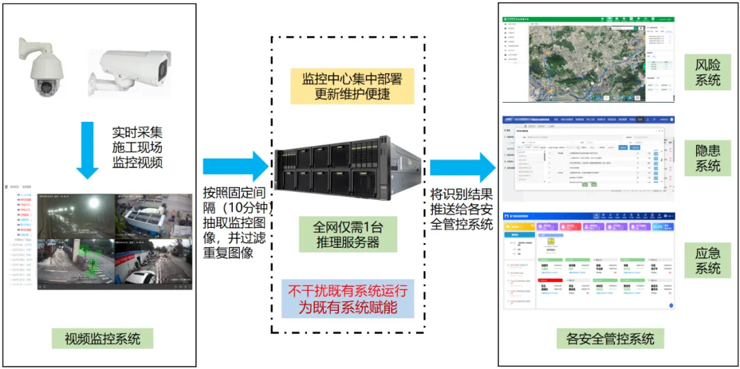 作为新一代的安全管控工具,它能自动识别分析监控图像中潜在工程安全隐患,并即时推送相应处置策略。基于2000万张现场及监控隐患照片,开展深度学习,模型综合识别率超过80%,误报率低于20%。