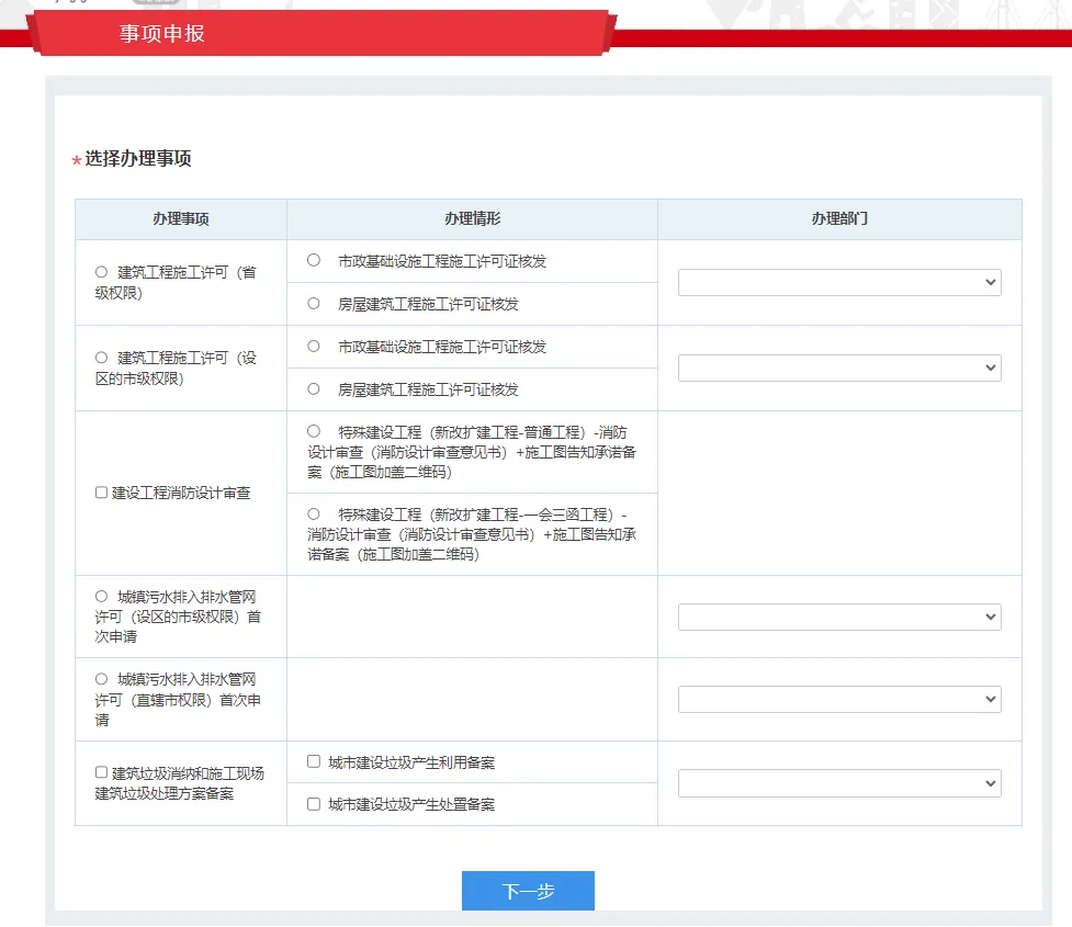 建设项目开工事项一网申报