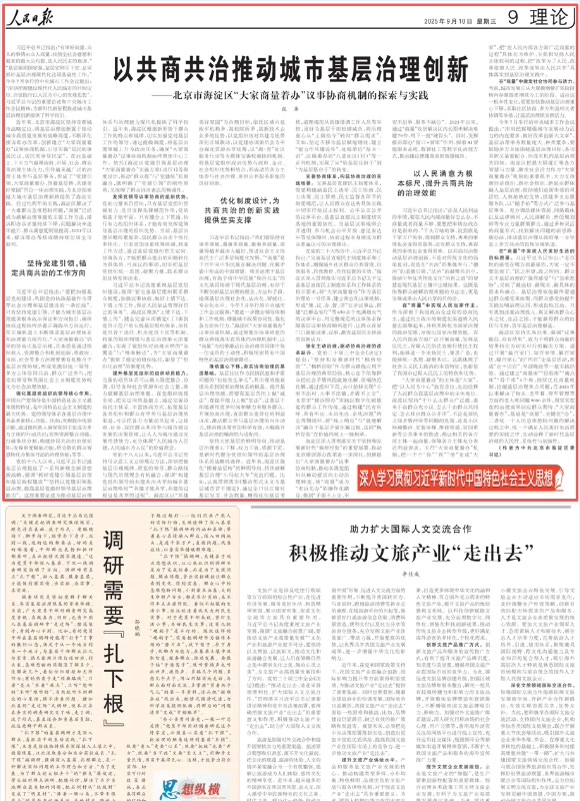 9月10日,《人民日报》理论版刊发海淀区委书记的署名文章《以共商共治推动城市基层治理创新——北京市海淀区“大家商量着办”议事协商机制的探索与实践》。