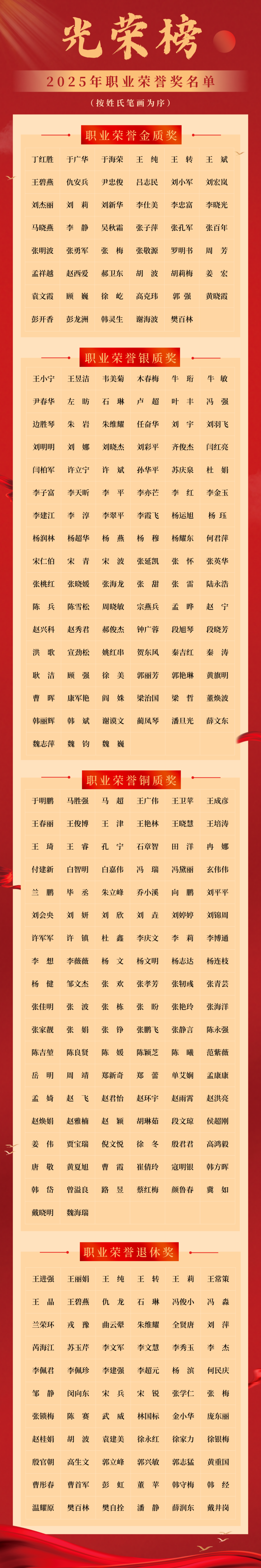 110人获职业荣誉铜质奖