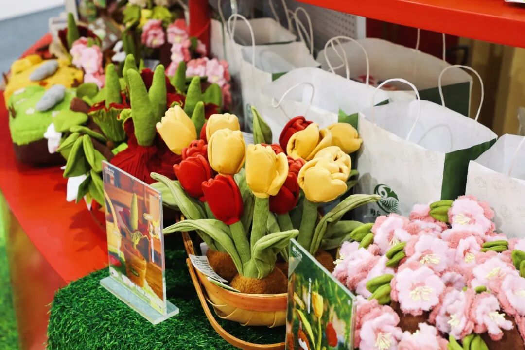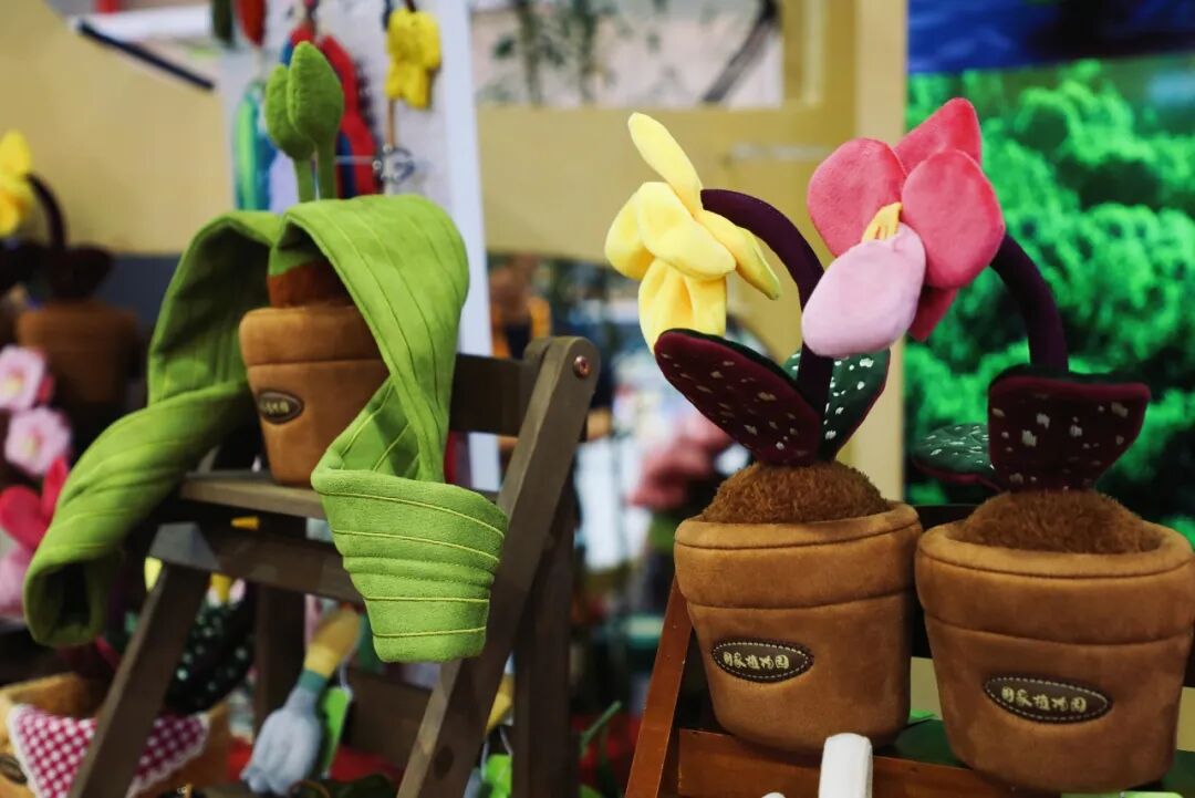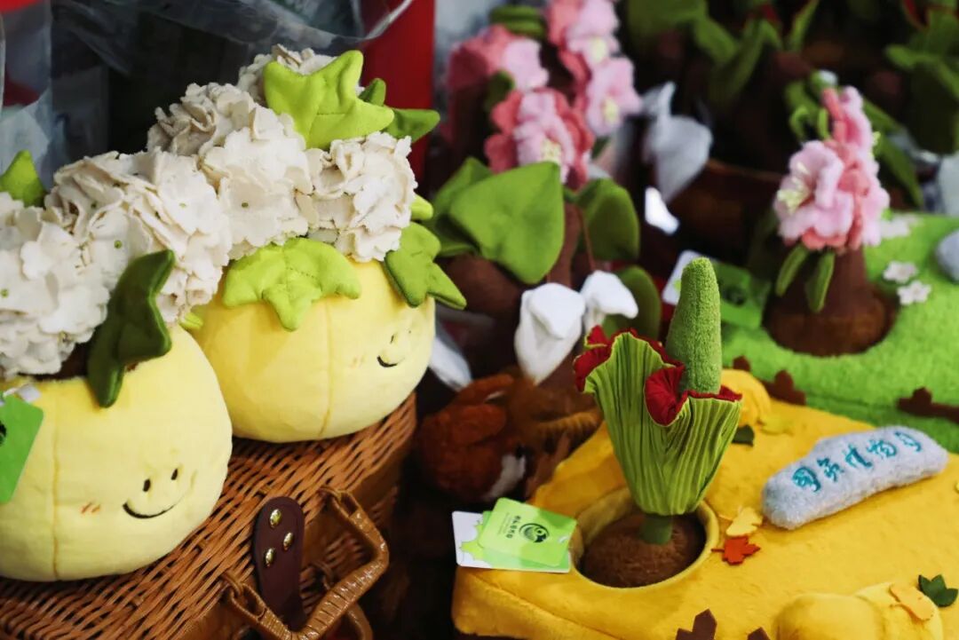 您还可以看到经典热销系列——春季特色花卉郁金香、欧铃兰、欧洲荚蒾‘雪球’,植物园三大旗舰植物之一的巨魔芋、国家一级重点保护野生植物珙桐和植物园自主培育的桃花品种‘品霞’桃,将四季之美尽收掌心。产品独特设计毛绒花盆、毛绒水壶等周边配件,给游客以“种植”毛绒的独特体验感,将植物“带”回家。