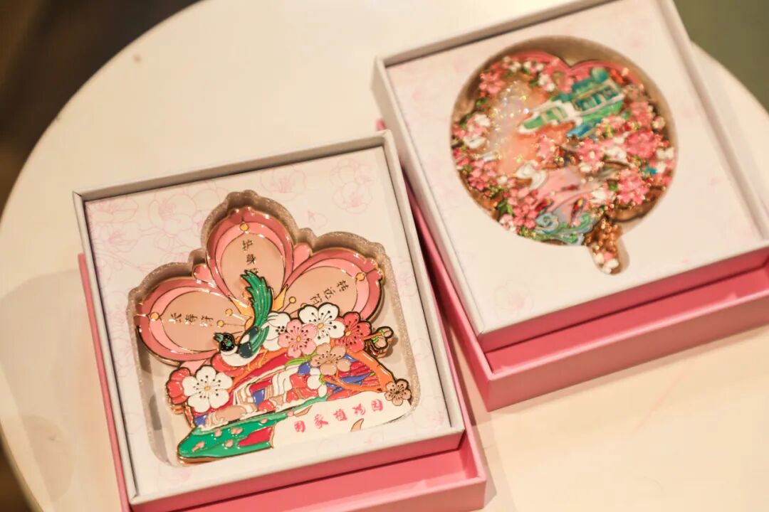流沙冰箱贴以植物园著名网红打卡地山桃花溪为灵感,将春日的桃林、跃动的锦鲤与灵动的流沙相结合,打造可玩可赏的治愈系文创。
