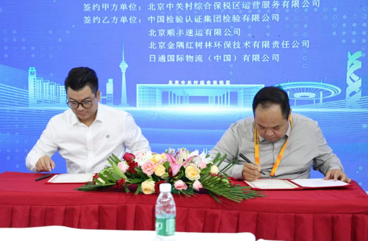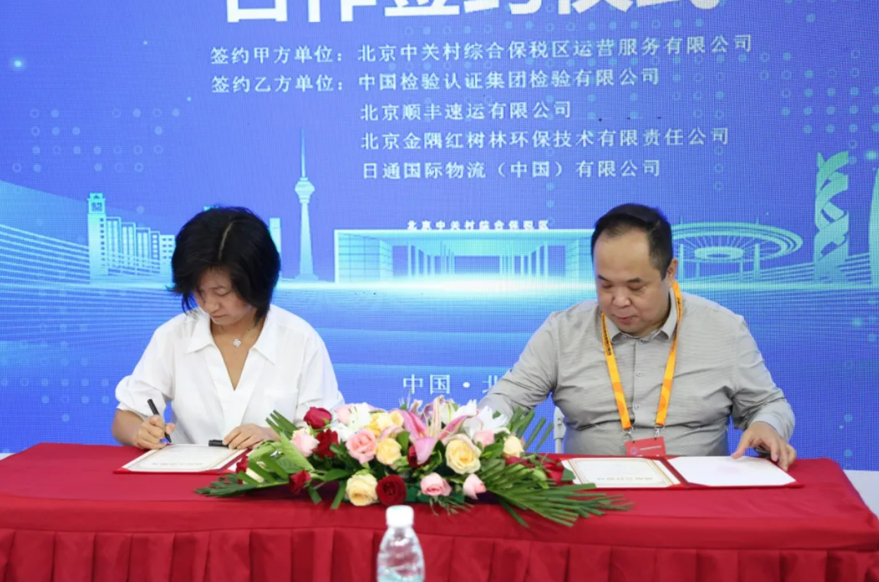 9月11日,2025中关村综合保税区合作签约仪式在首钢园区举办。北京中关村综合保税区运营服务有限公司与中国检验认证集团检验有限公司、北京顺丰速运有限公司、北京金隅红树林环保技术有限责任公司、日通国际物流(中国)有限公司四家企业签署战略合作协议,将在检验认证、智慧物流服务等方面助力北京中关村综合保税区(以下简称“中关村综保区”)的发展。