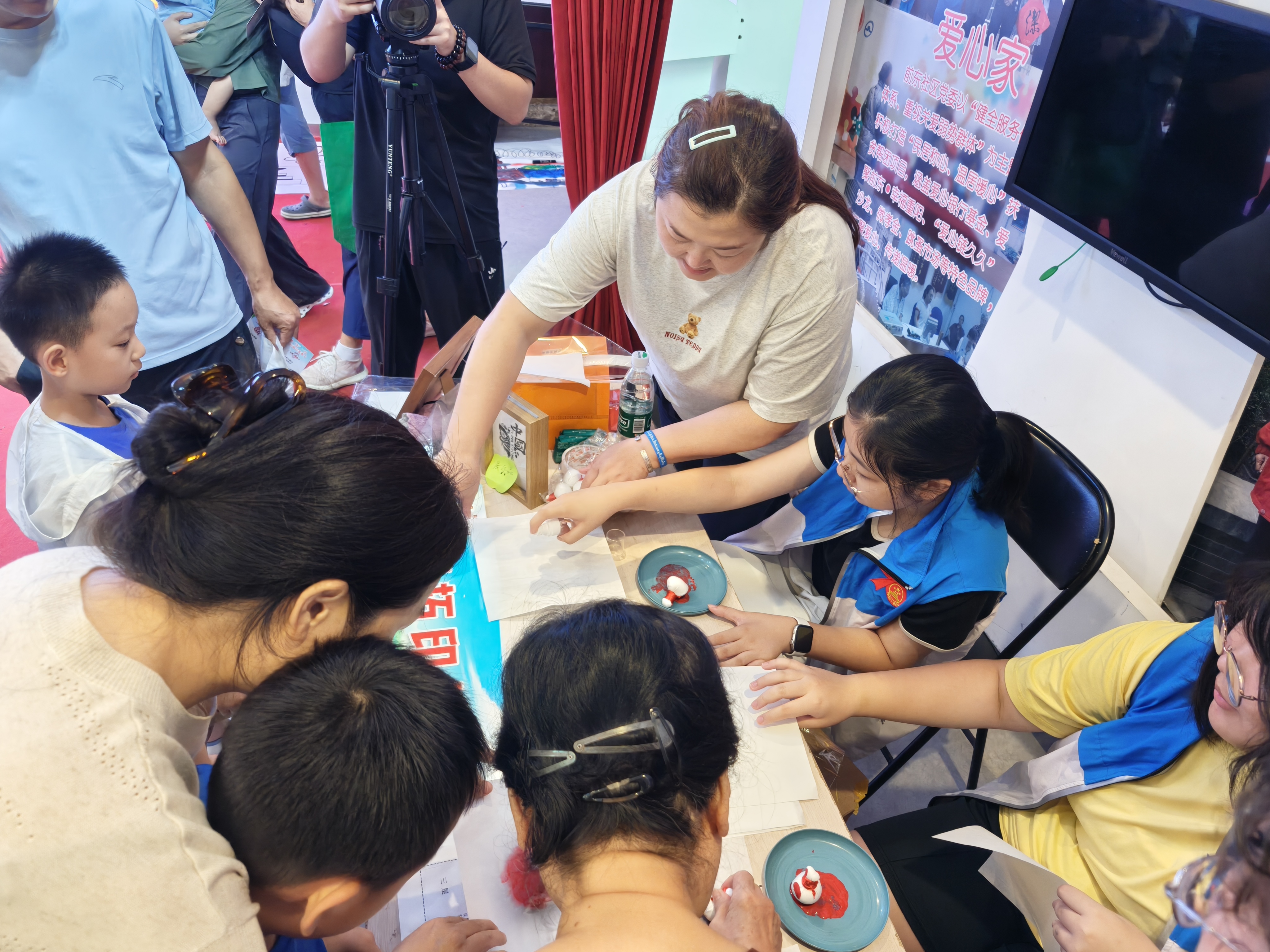趣味体验区:辖区共建单位链家地产主动参与活动筹备,精心准备了 DIY 黏土制作、扇子彩绘等创意项目。孩子们发挥想象力捏制可爱造型,大人们则在扇面上勾勒各种图案,动手过程中满是欢声笑语,成为现场“动有竞技、静有创意”的温馨亮点。