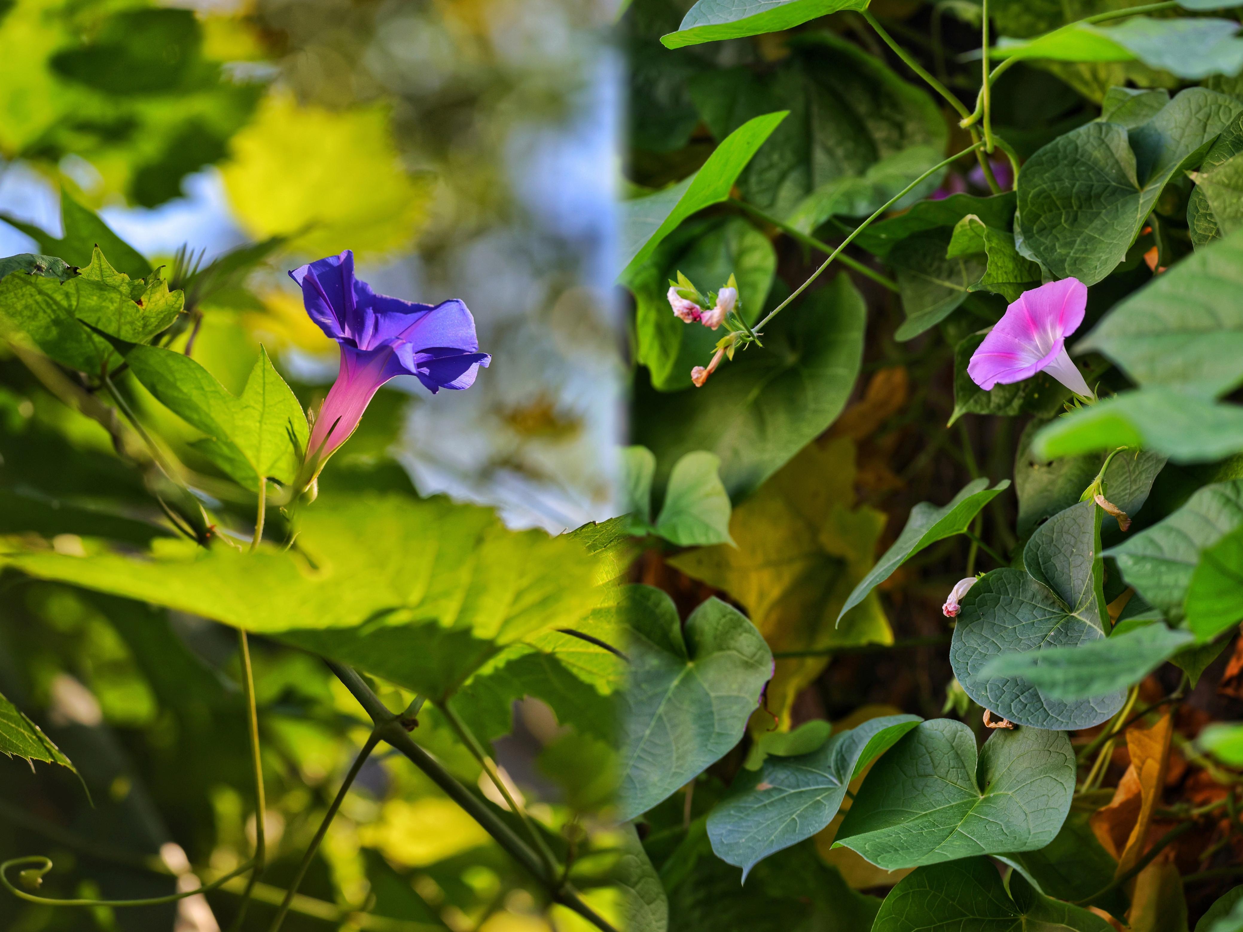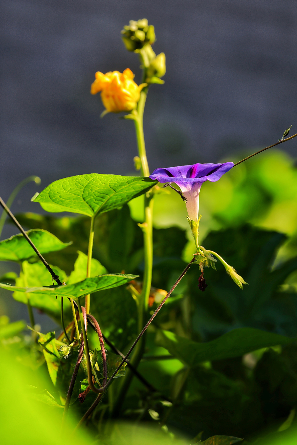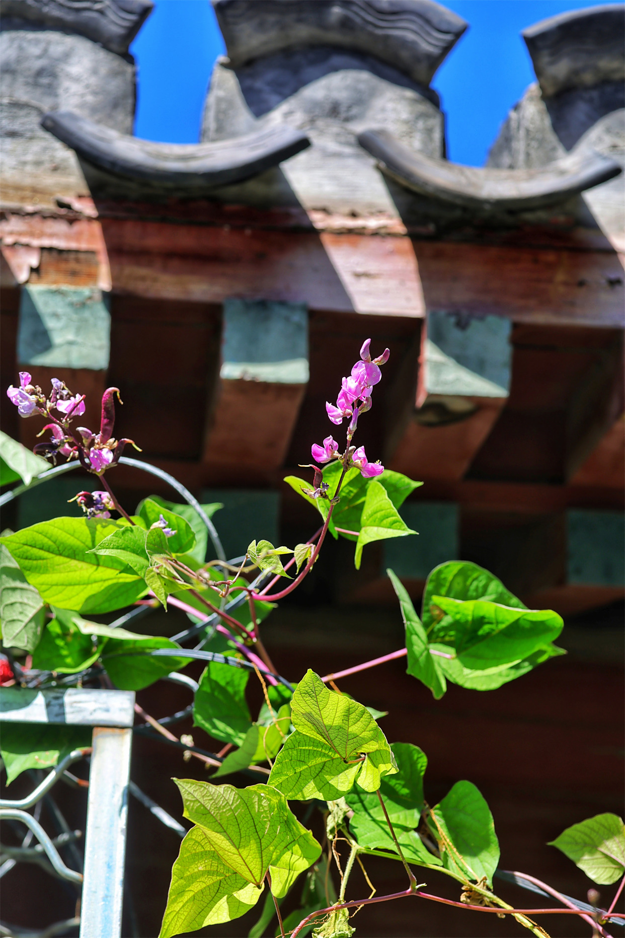 墙角的牵牛花攀着灰墙,紫的、蓝的,像一支支小喇叭,吹送着夏末最后的余音。