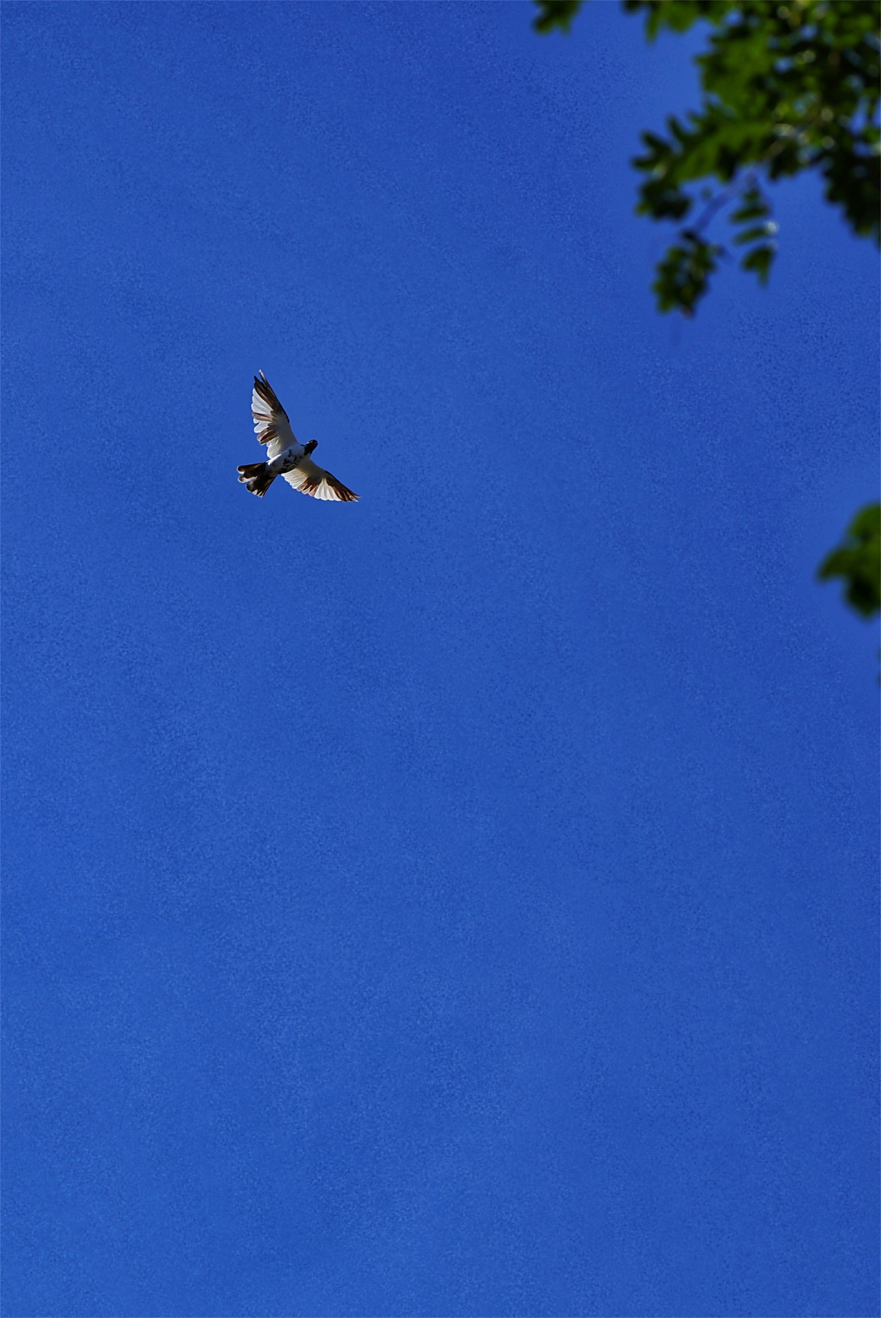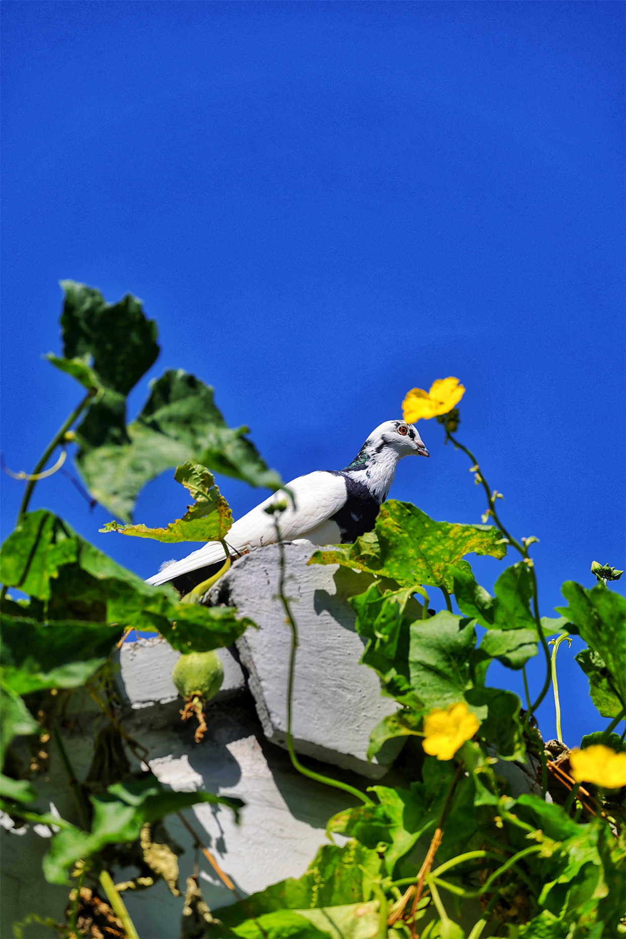 鸽子在灰瓦屋顶上“咕咕”低语,时而扑棱棱飞起,在湛蓝天空划出几道弧线,又轻轻落回另一处屋檐。