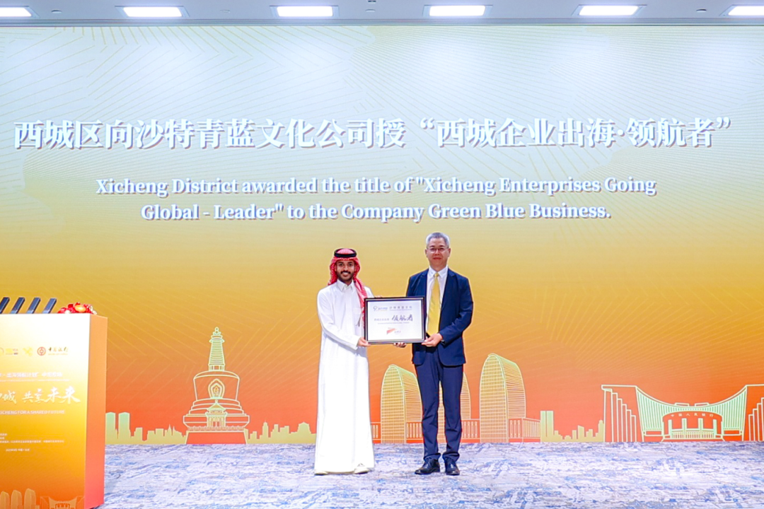 活动现场举行了“西城企业出海·领航者”授牌仪式。西城区为中国国际商会和沙特青蓝文化公司授予荣誉牌匾,表彰其为连接中外市场、促进企业务实合作所发挥的重要桥梁作用。