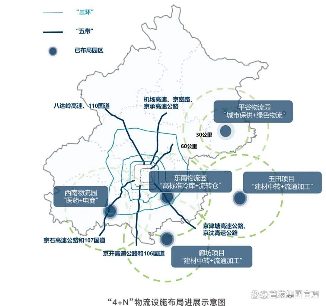 集团所属首发投资集团依托交通路网优势,构建“4+N”仓配体系,以东南智慧物流港为核心节点,逐步布局市内前置仓,打通“从产地到餐桌”的全链路闭环。东南港总建筑面积约37万平方米,创新“三首层”立体交通设计和高速定向匝道直连系统,通过智慧调度平台实现物流动线优化,围绕冷链食材保供基地定位,服务北京特大消费城市的物资流通需求。