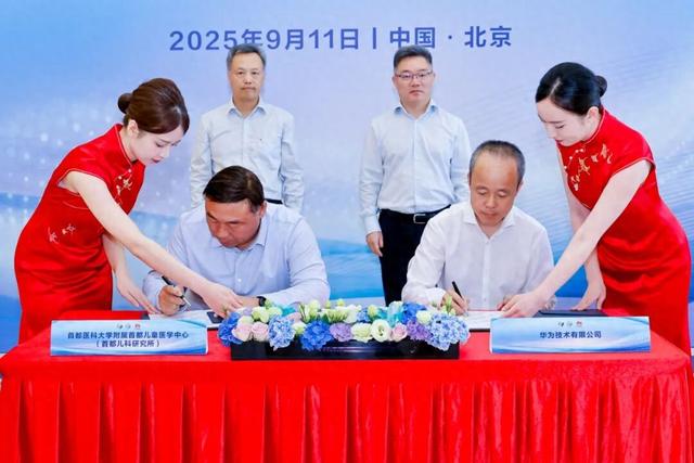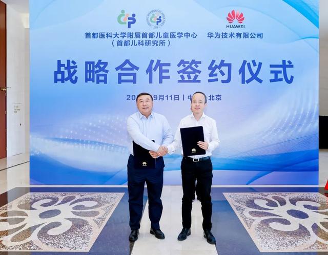 2025年9月11日,首都医科大学附属首都儿童医学中心(首都儿科研究所)与华为技术有限公司在北京签署战略合作协议。首都儿科研究所所长张建与华为北京政企业务部部长宋保民代表双方签约,首都儿科研究所党委书记张金保、华为公司副总裁兼公共事业军团政委杨伟军出席仪式并见证这一重要时刻。首都儿科研究所相关职能处室负责人及华为北京政企医疗业务部门负责人等共同参加了签约仪式。