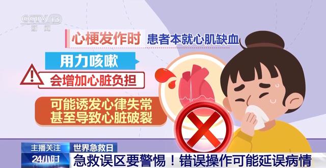 心梗发作时患者本就心肌缺血,用力咳嗽会增加心脏负担,可能诱发心律失常,甚至导致心脏破裂。正确做法是让患者立即平卧休息,保持安静,迅速拨打120,若患者失去意识,需立即进行心肺复苏。