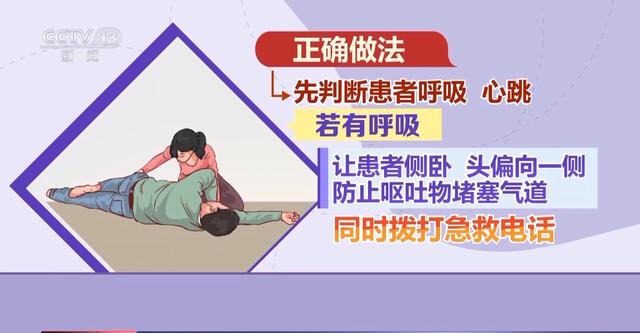 民间还有“昏迷时掐人中”这个做法也是错误的。掐人中不仅无法让昏迷者苏醒,还可能因用力过猛造成面部损伤。正确做法是先判断患者呼吸、心跳,若呼吸心跳停止,立即进行心肺复苏;若有呼吸,让患者侧卧,头偏向一侧,防止呕吐物堵塞气道,同时拨打急救电话。(来源:央视新闻客户端 记者 孙金燕 曹宇)
