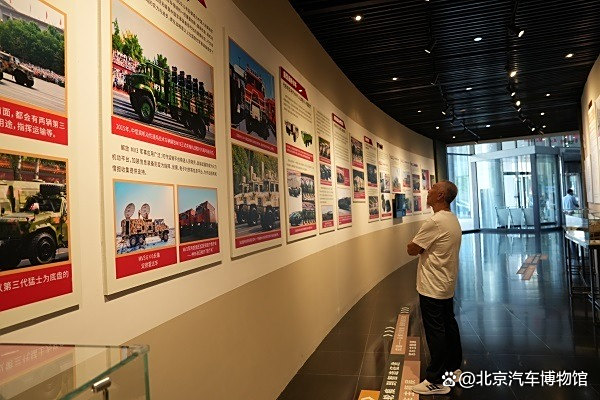 在北京汽车博物馆刚开展的“戎耀——从烽火轮痕到智造征途”军车主题展区,观众驻足观看展览,体验军车巡游,重温峥嵘岁月,凝聚奋进力量。