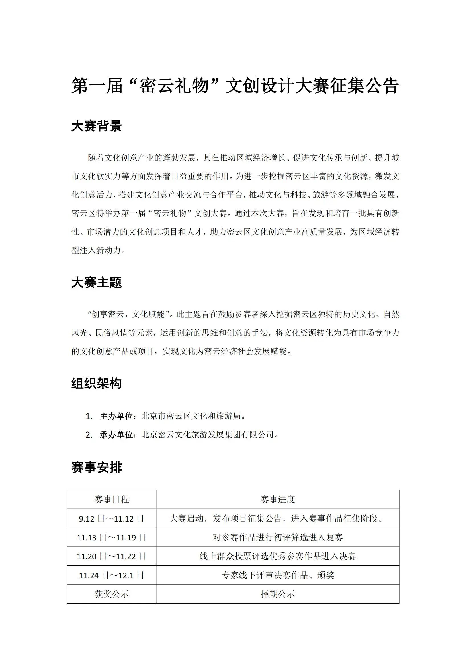 多方联动,保障赛事专业权威。本次大赛由北京市密云区文化和旅游局主办,北京密云文化旅游发展集团有限公司承办。
