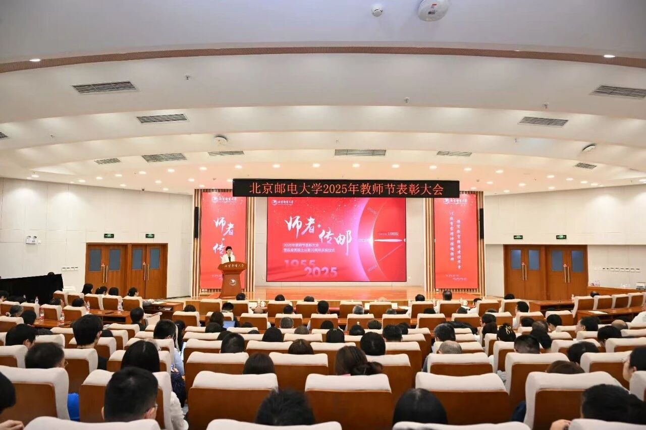 在第41个教师节来临之际,9月10日,“师者·传邮”北京邮电大学2025年教师节表彰大会暨陈俊亮院士从教70周年庆祝仪式在西土城路校区长年报告厅举行。校党委书记续梅,校长徐坤,党委副书记曲昭伟、张建华,副校长苏森、任雄飞,党委副书记马启华,副校长彭木根出席大会。出席大会的还有陈俊亮院士、钟义信教授。获奖教师、从教三十年教师、荣休教师及新入职教师代表,相关职能部门和教学单位负责人,学生代表等参加会议。会议由青年教师刘然、郗小超主持。