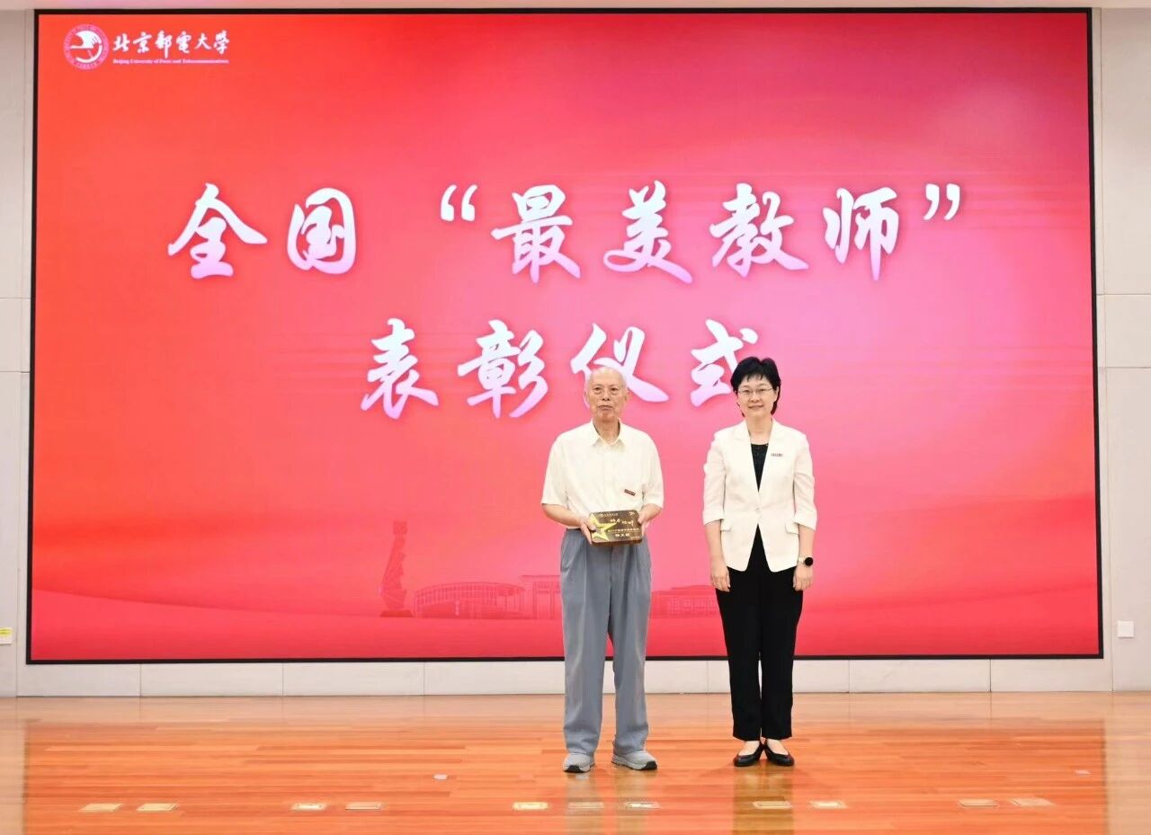 表彰大会以“以教育家精神铸魂强师 谱写教育强国建设华章”为主题,并特别为首位“传邮·大先生”荣誉称号获得者陈俊亮院士举行了从教70周年庆祝仪式。七十载躬耕教坛,陈俊亮先生以立德树人的坚守诠释初心如磐:凭赤子之心铸就信息领域的学术丰碑,以师者仁心培育万千行业栋梁,成为一代代北邮人景仰追随的精神典范。到会师生共同向陈俊亮院士致以崇高敬意,在致敬中传承其 “经师” 与 “人师” 相统一的育人情怀。