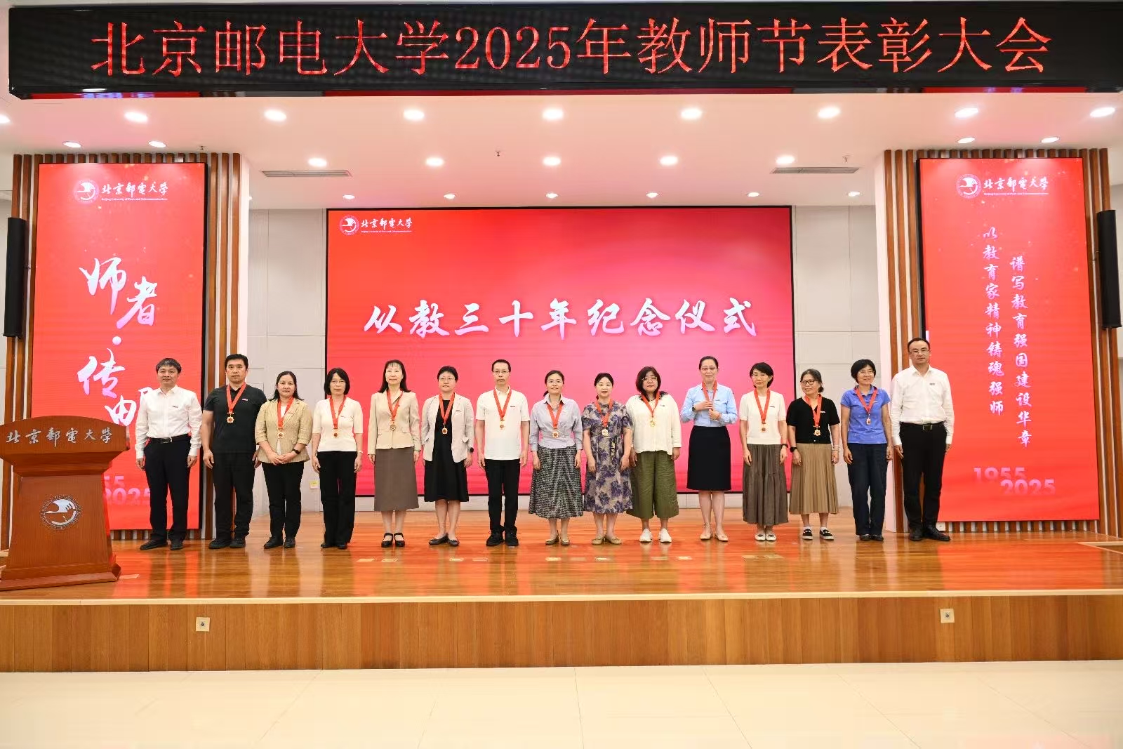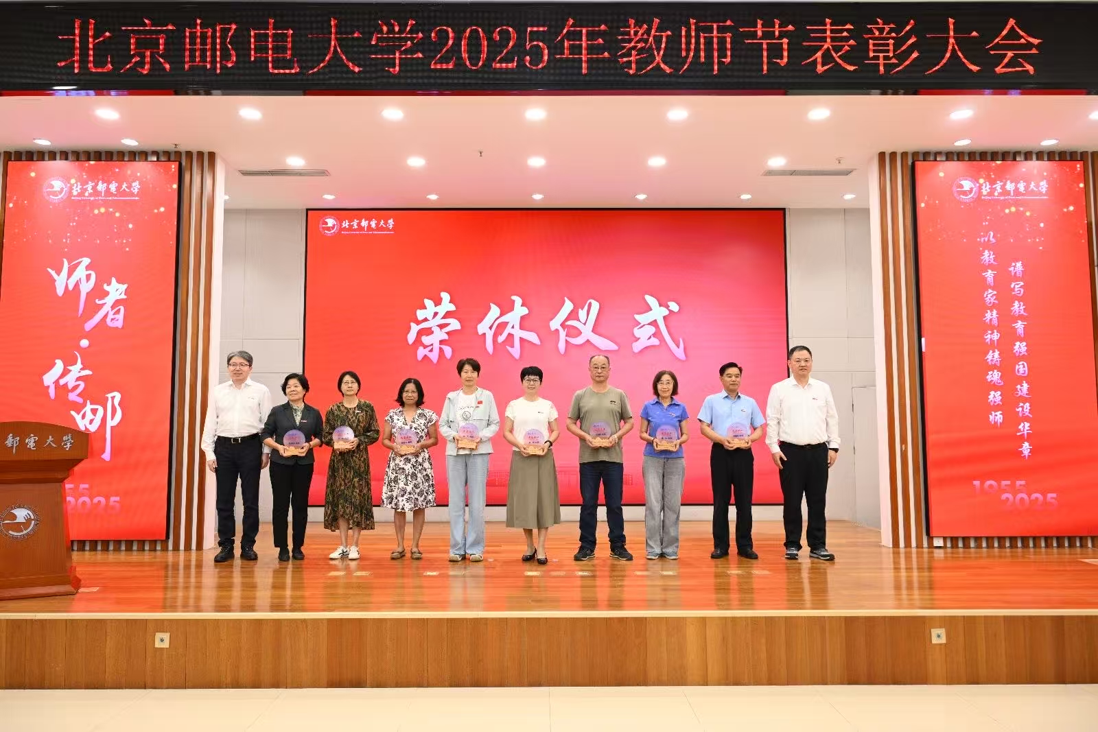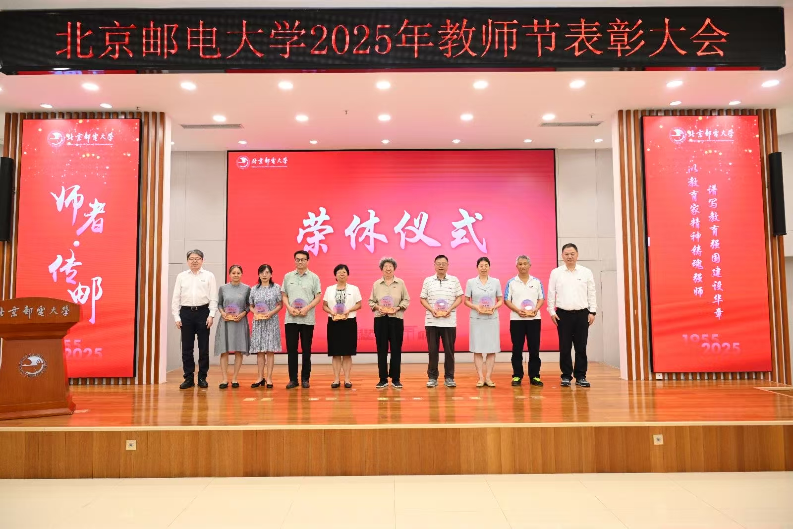 大会对2025年全国“最美教师”获得者钟义信教授、第四批“全国高校黄大年式教师团队”创建示范活动入围团队——物联网基础关键理论与关键技术教师团队,以及学校第三届“烛光”奖获奖教师、“传邮70” 青教先锋获得者、从教三十年教师、荣休教师进行了表彰。