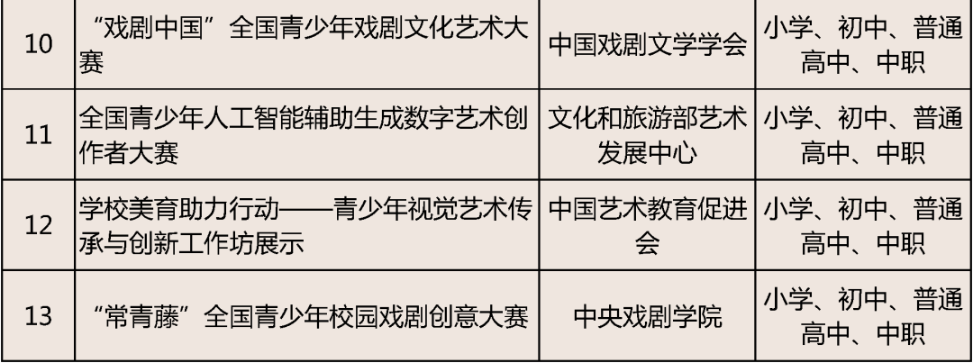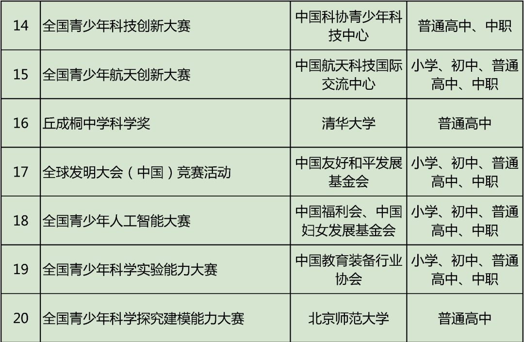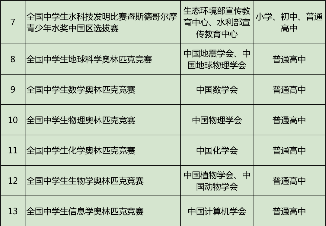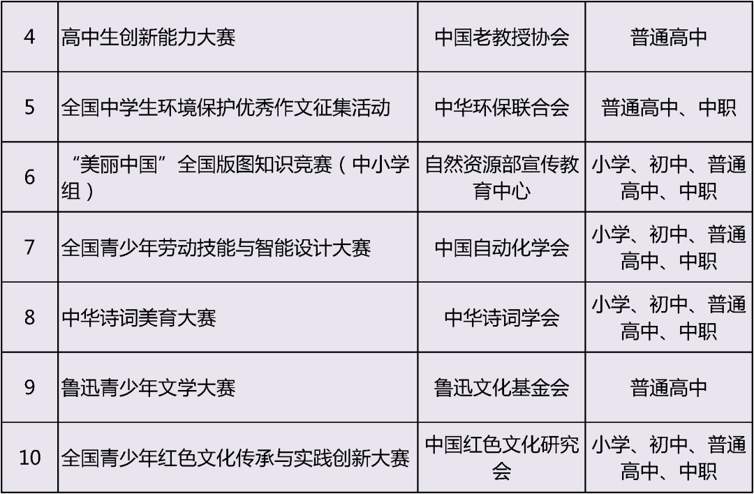 本次公示的竞赛名单共47项,其中包括自然科学素养类22项、人文综合素养类12项、艺术体育类13项。公示期为2025年9月11日至17日。