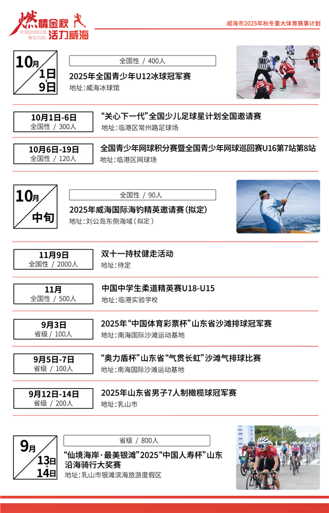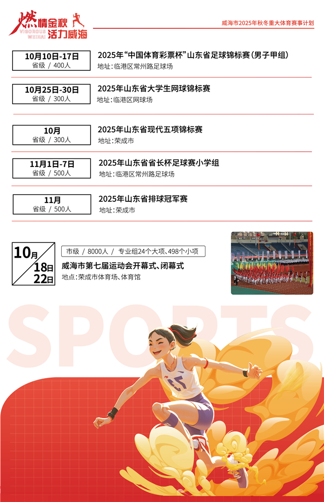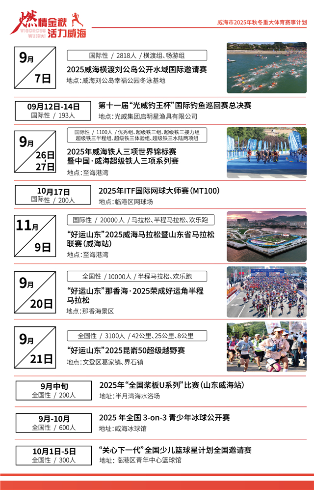 燃情金秋,活力威海!威海市2025年秋冬重大体育赛事计划来了