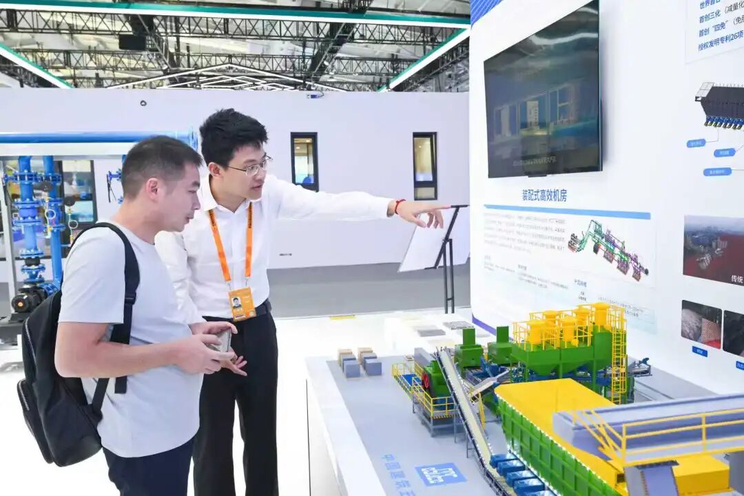 中建五局自主研发的世界首台地铁盾构渣土原位资源化利用生产线——“中建造石机”亮相展会,该技术已被专家认定为国际领先技术,获授权发明专利26项。