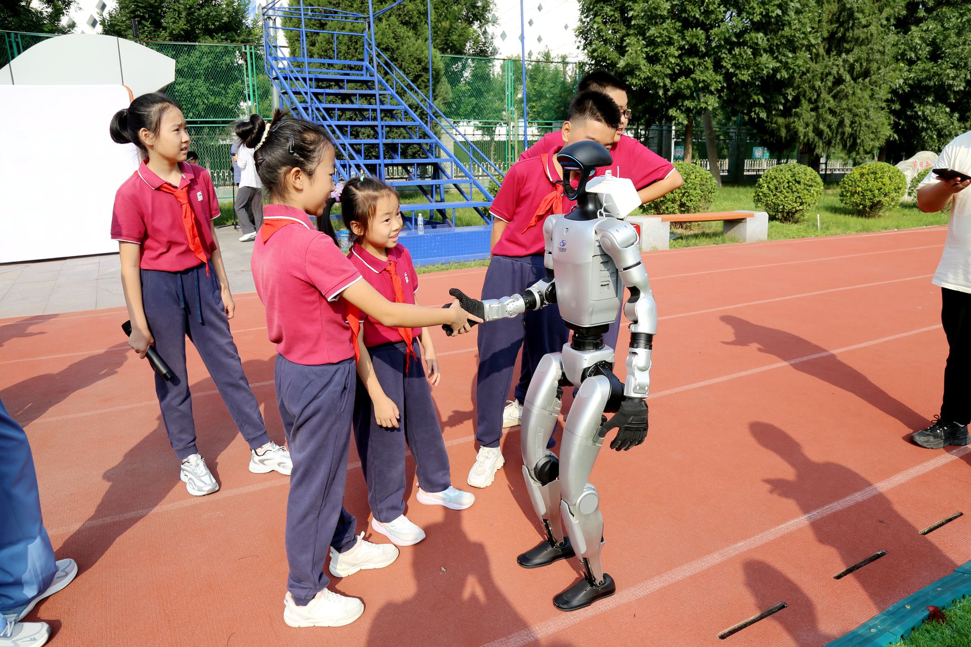 “你好!我是你们的新朋友!欢迎大家!”近日,在北京市门头沟区大峪第一小学,机器人“小智”团队一出现,就吸引了学生的目光。学生们与“小智”团队交流互动,在老师的带领下,了解机器人的构造和运行程序。新学期,大峪一小开展了丰富的人工智能主题教育活动,通过邀请智慧团队走进校园、将AI融入原创情景剧、开展人工智能课等方式,助力师生开启科技之旅。