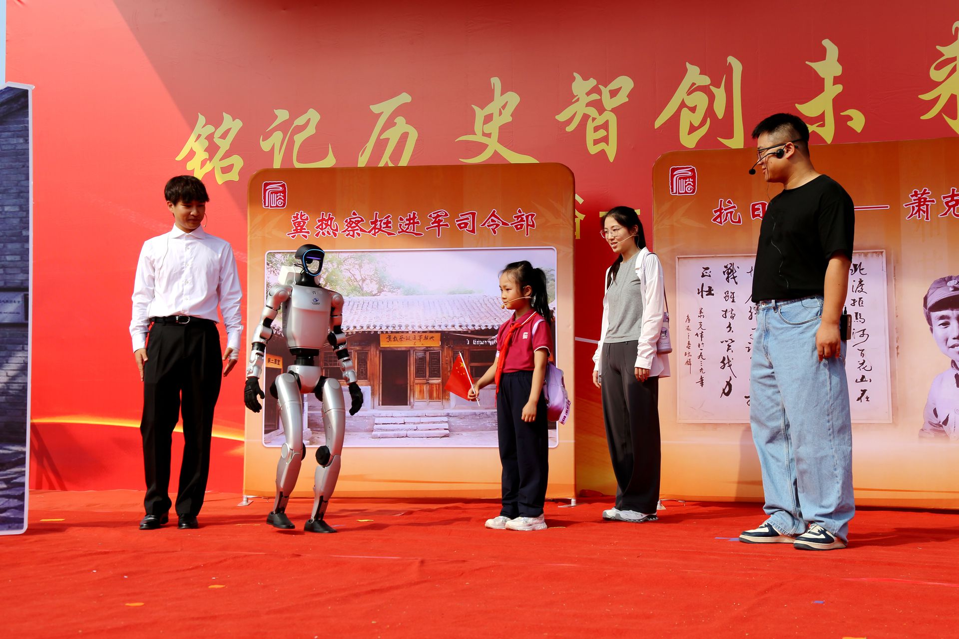 除了与机器人对话,近距离接触“黑科技”,学校还以门头沟区红色教育资源为依托,精心编排原创情景剧《铭记历史 共同守护》。情景剧融入AI元素,邀请学生与家长代表倾情演绎,通过生动的剧情、鲜活的人物形象,展现京西抗战历史,让学生上了一堂沉浸式“大思政课”。