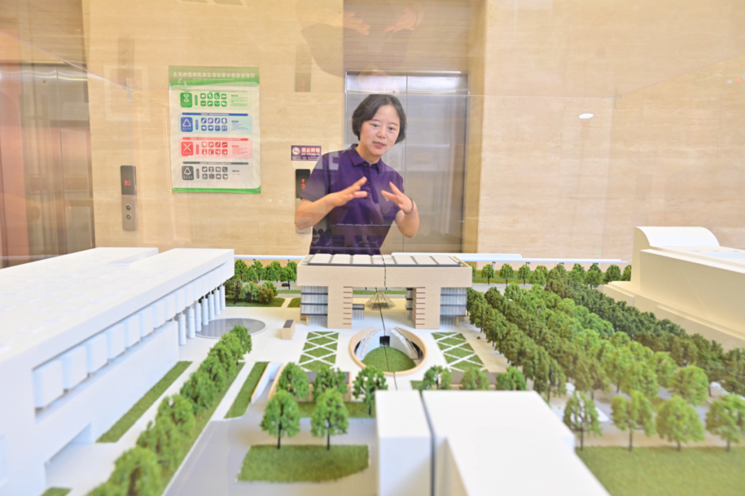 图中为清华大学科学博物馆建筑设计模型,清华大学教师范爱红正在讲解博物馆设计理念(来源:北京日报)