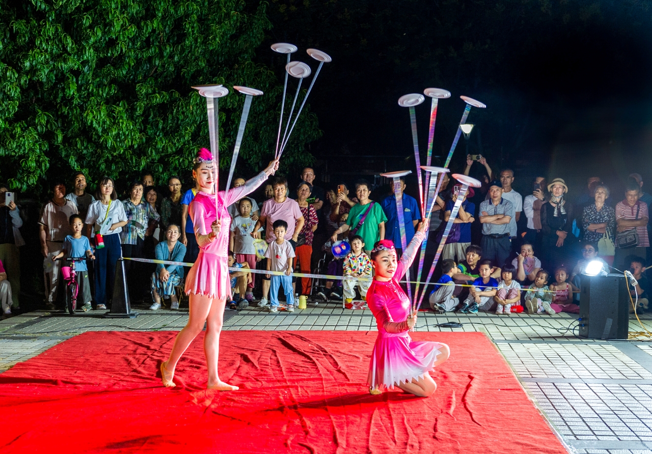 整场晚会荟萃歌曲、杂技、戏曲、魔术等16个精彩节目,好戏连台,掌声不断。表演者全情投入,与观众热情互动;孩子们嬉笑追逐,老人们摇扇谈笑,年轻人纷纷举起手机,记录下一幕幕精彩瞬间。