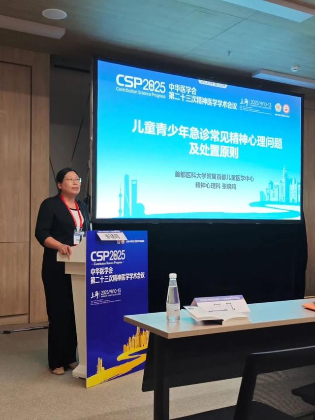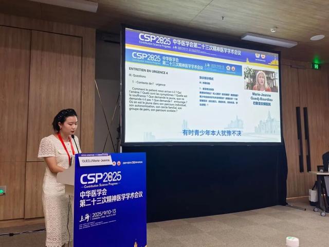 2025年9月11日,在“儿童青少年精神疾病急症处置优化策略——多学科诊疗模式”专题,北京安定医院郑毅主任医师和首都儿童医学中心杨健主任医师主持了本次专题会议。北京安定医院何凡主任,分享了“儿童青少年精神心理问题的危机干预策略”,从专科医院的视角介绍了儿童青少年急症处置策略。张晓鸣分享了“儿童青少年急诊常见精神心理问题及处置原则”,从儿童医院角度介绍了急诊及会诊中常见的精神心理问题的处置策略。本次专题特别邀请巴黎圣安娜医院的Marie-Jeanne Guedj-Bourdiau教授进行“儿童青少年精神心理疾病急症发作表现、诊断和理解”专题发言。针对专家无法亲临现场的情况,精神心理科团队提前完成课程录制、法文PPT翻译及同步字幕制作,团队成员刘勤一全程提供专业中文讲解,有效消除语言障碍,确保参会同道深度理解课程内容,收获一致好评。