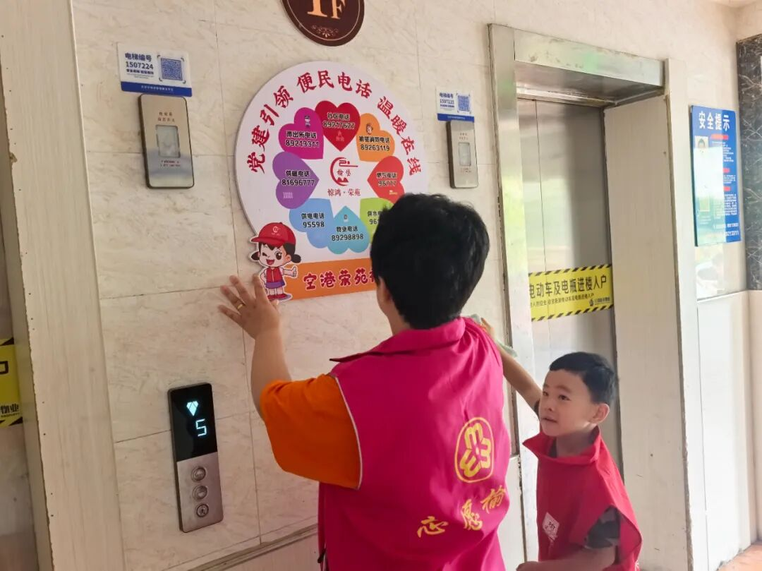 随后,“志愿大扫除,周末一起来”活动展开,将“家庭和谐”延伸至“社区共融”。党员志愿者带头分组,带领亲子家庭清理楼道杂物、擦拭公共设施、分类投放垃圾,劳动中还穿插情绪课延伸内容。孩子们化身“小助手”,与家长协作:踮脚擦扶手、蹲地捡垃圾,干劲十足。“和妈妈一起劳动很幸福,擦亮栏杆特别有成就感!”一名小朋友举着抹布说道。