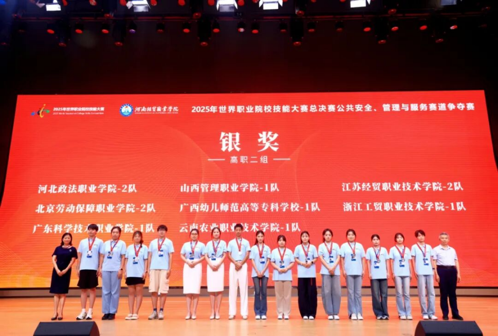 公共安全、管理与服务赛道争夺赛(高职组)在河南郑州举行,共计126支高职队伍参赛。我院劳动经济管理学院靳晓曼、梁勤两位老师指导的北京劳动保障职业学院 1队和石玉峰、肖红梅两位老师指导的2队均获得银奖。