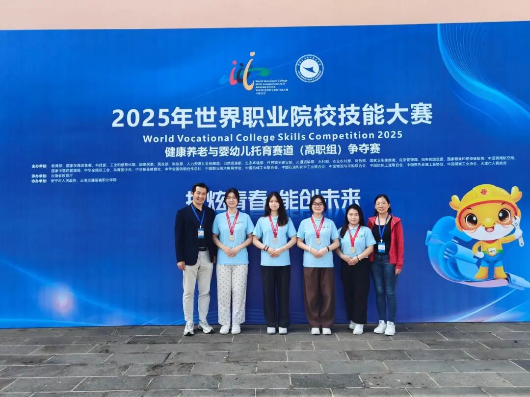 在健康养老和婴幼儿托育赛道争夺赛中,民生福祉学院邹亮、任慧玲两位老师带领智慧健康养老服务与管理专业学生参赛,凭借扎实的专业储备、创新的服务设计与全面的赛前筹备,最终斩获全国银奖。备赛过程中,师生多次深入养老机构、安宁疗护病房及社区一线,通过实地调研全面掌握行业一线工作现状、研究现状,精准捕捉最新发展动态;并在此基础上,结合调研所得设计出适配当前行业最新现状的比赛主题,同时创新提出以“六全照护”为基础的“全人照护”模式,聚焦解决临终期老人及家庭面临的实际问题。此外,团队还主动查阅专业文献、梳理行业机构最新研究成果,进一步完善方案细节,以“实践调研+理论创新+问题导向”的备赛思路,为赛事佳绩筑牢根基。